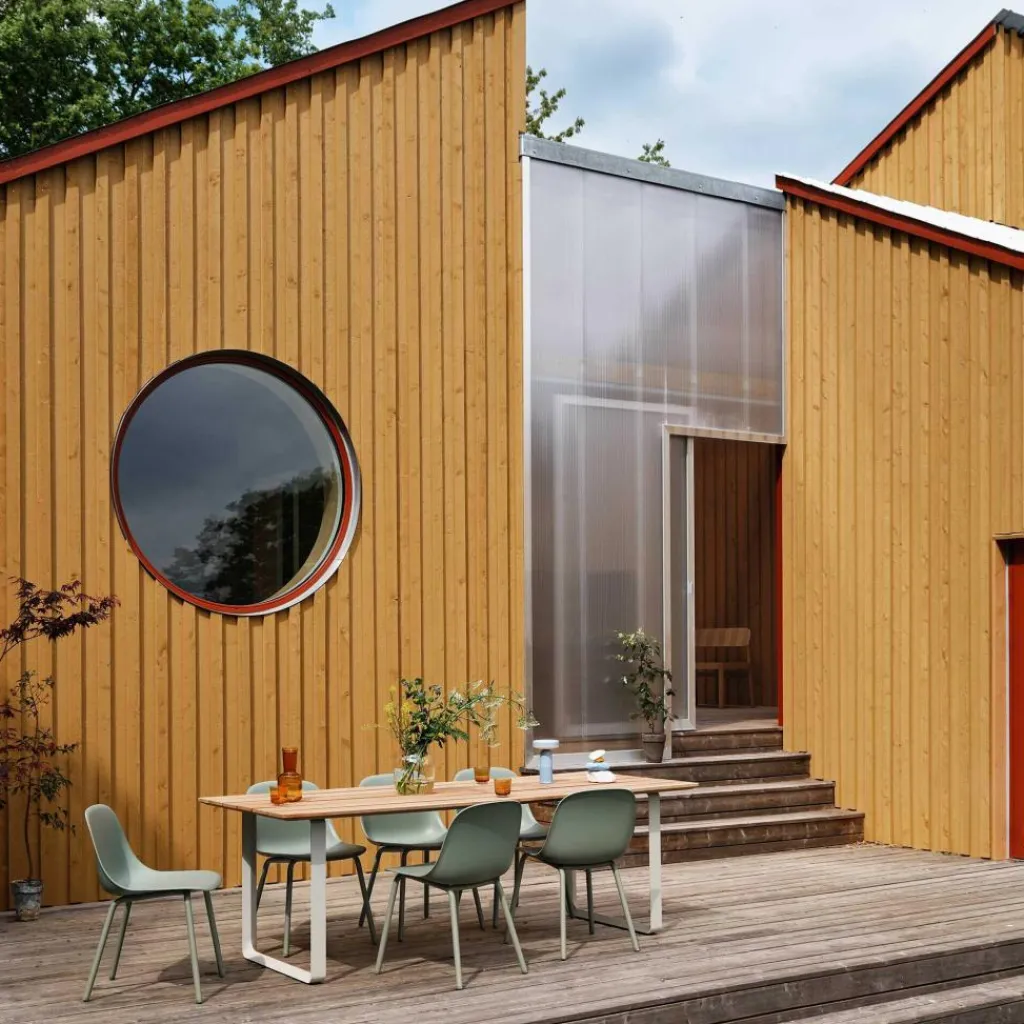Das finnische Wort Muutos bedeutet so viel wie Umbruch oder neue Perspektive. Einen innovativen Blick auf Outdoormöbel bietet der Fiber Gartenarmlehnstuhl zweifellos. Das Schalenmaterial des ergonomisch geformten Sitzes besteht zu 100% aus recyceltem Kunststoff. Mit jedem Stuhl wird im Sinne der Nachhaltigkeit mindestens 3,2kg Kunststoffabfällen neues Leben eingehaucht. Gemischt ist der Schalenverbundstoff mit UV-Stabilisatoren, die vor Sonneneinstrahlung und dem Verblassen der Farbe im Freien schützen. Das Rohrgestell des Gartenstuhls ist aus verzinktem Stahl mit einer matten, wetterfesten Pulverbeschichtung hergestellt. Durch die tiefe Sitzfläche und die angenehm hohen Armlehnen fühlt man sich beim Sitzen rundum geborgen.