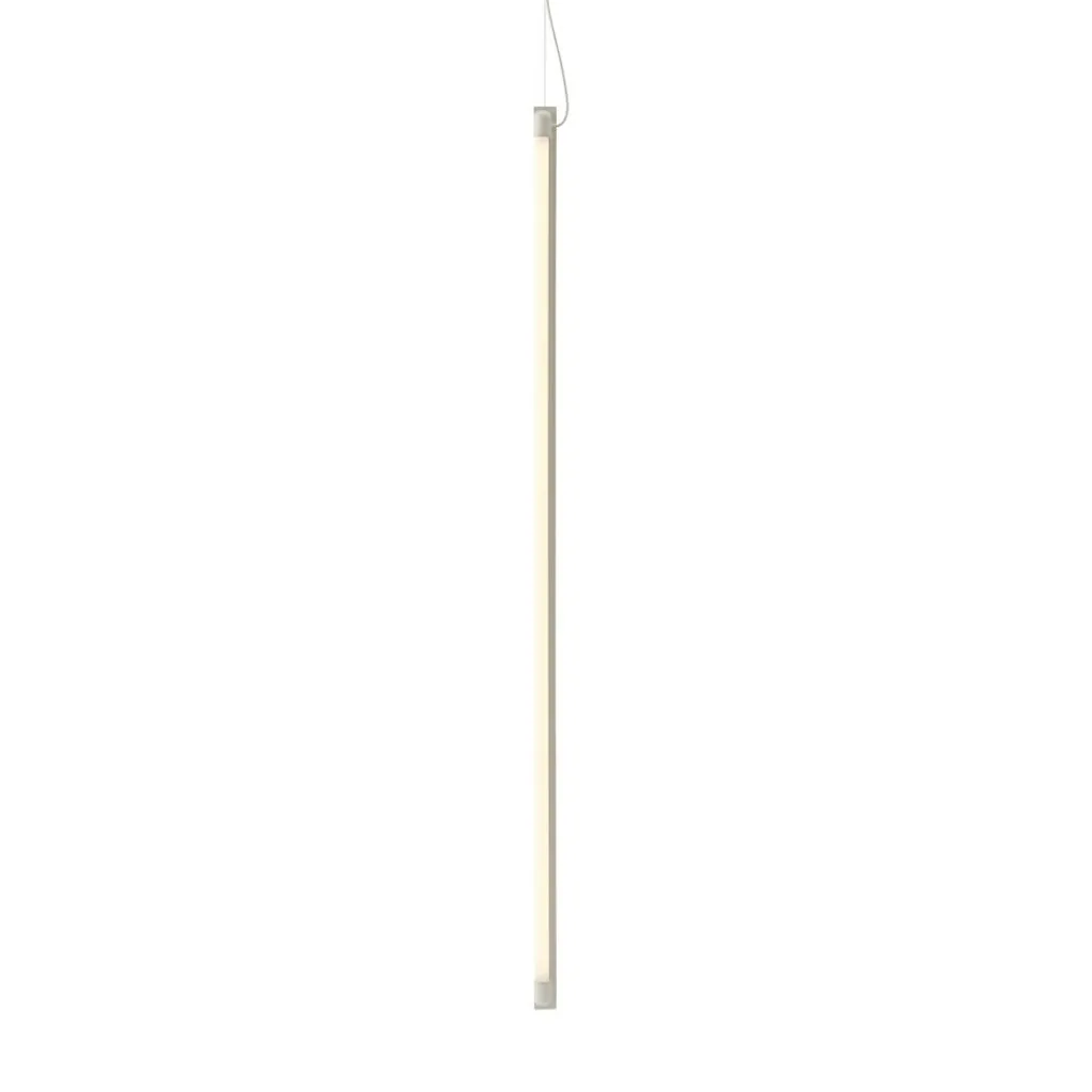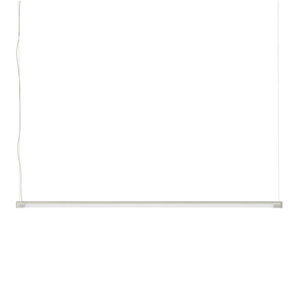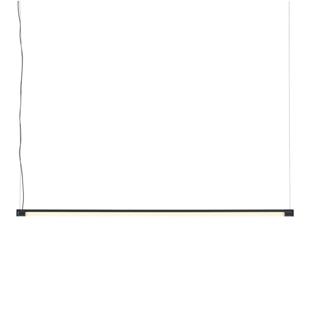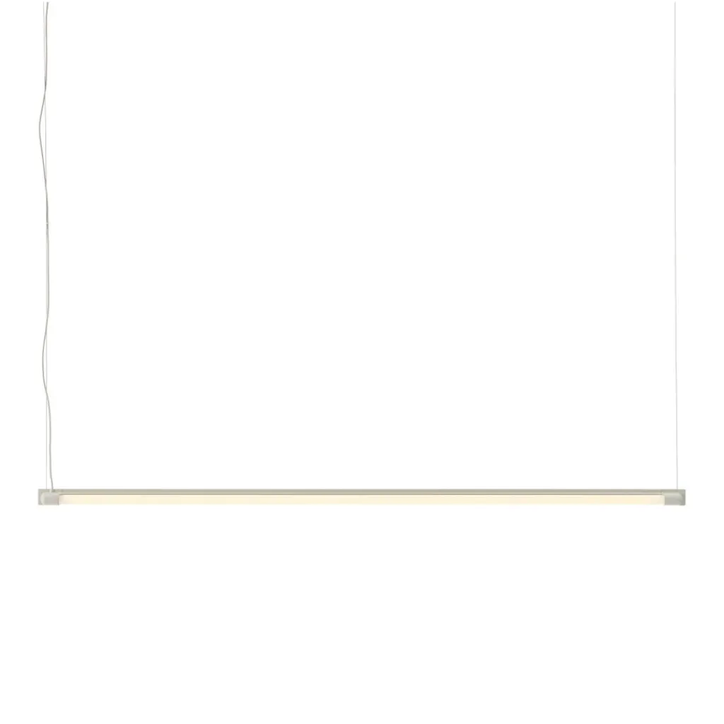 Die Fine LED Pendelleuchte 120cm wurde vom TAF Studio für die Marke Muuto entworfen. Das Stockholmer Designstudio gestaltete eine filigrane Leuchte, die mit ihrer fast unsichtbaren Aufhängung über dem Esstisch, dem Arbeitsbereich in der Küche oder der Wohnlandschaft zu schweben scheint.