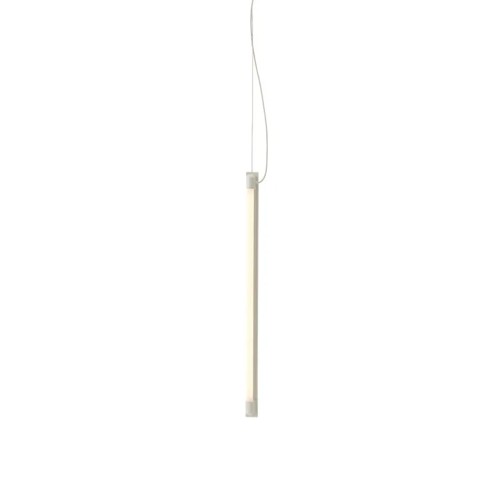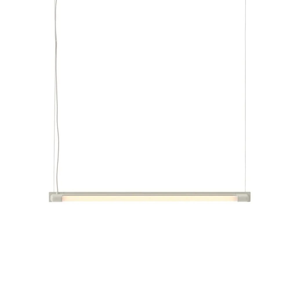 Industrielle Röhrenleuchten standen dem Stockholmer Designstudio Vorbild für die Pendelleuchte mit ihrer schlichten Röhrenform und einem Lichtband mit einem großzügigen Abstrahlwinkel von 320 Grad. Hergestellt ist die Fine LED Pendelleuchte 60cm aus druckgegossenem und pulverbeschichtetem Aluminium, das ein transparenter Blendschutz aus Kunststoff ergänzt. Das Lichtband wird von zwei Endkappen aus Aluminium eingefasst. Das integrierte Leuchtmittel hat eine Lebensdauer von 35.000 Stunden und lässt sich in seiner Helligkeit dimmen. Die Pendelleuchte wird horizontal mit einem Baldachin aus Kunststoff und zwei dünnen Drähten mit Halterungen an der Decke befestigt. Optional kann sie vertikal mit nur einem Draht von der Decke herabhängen.