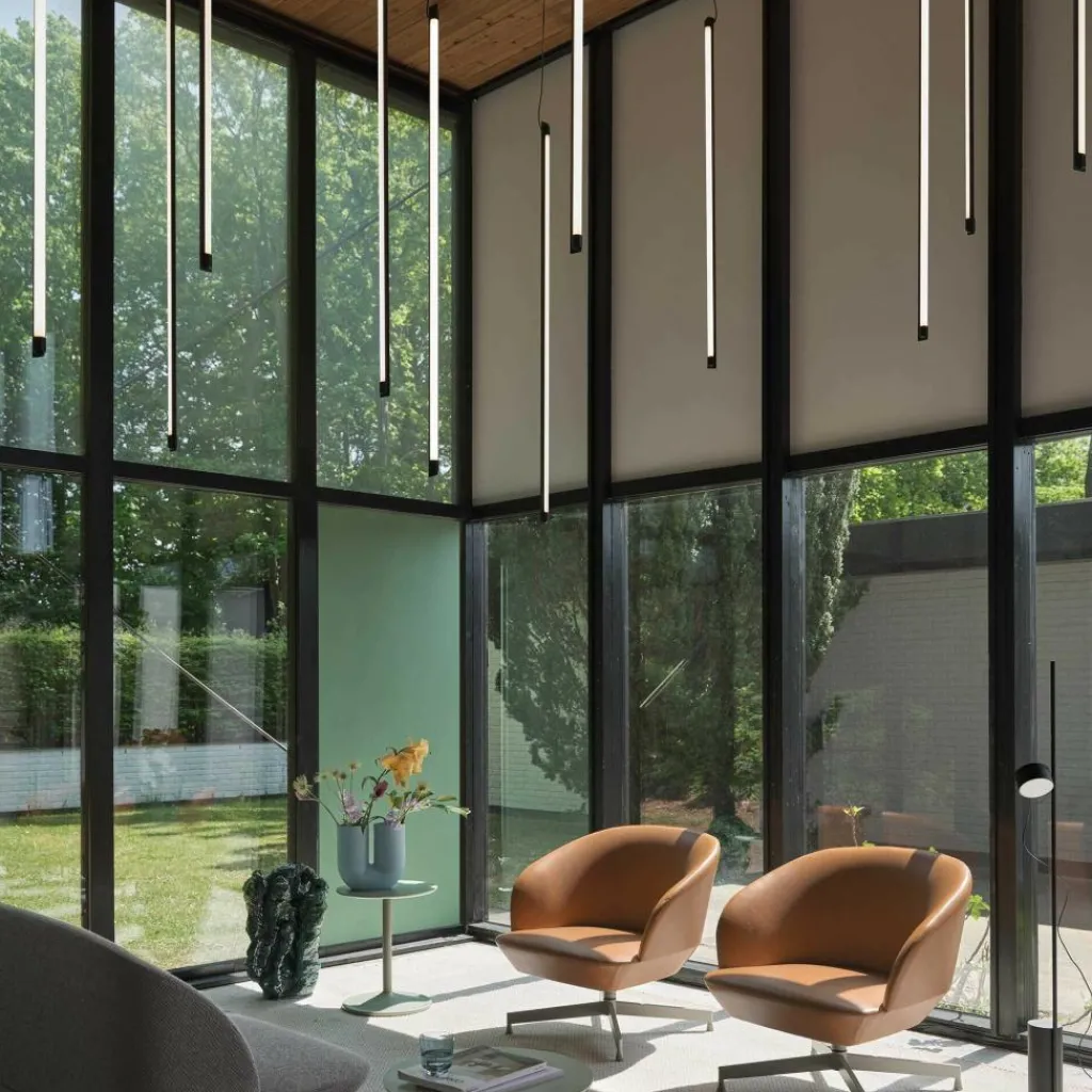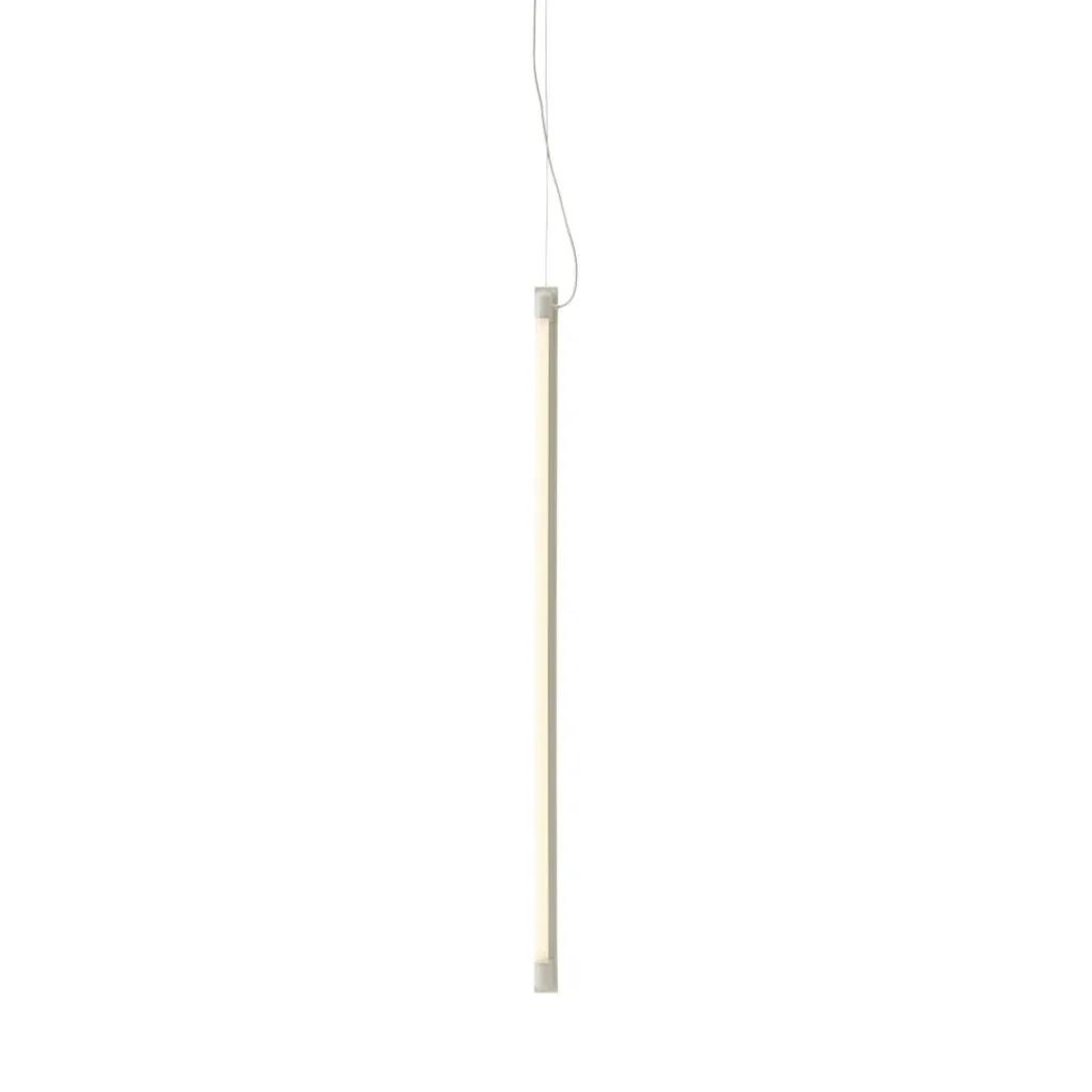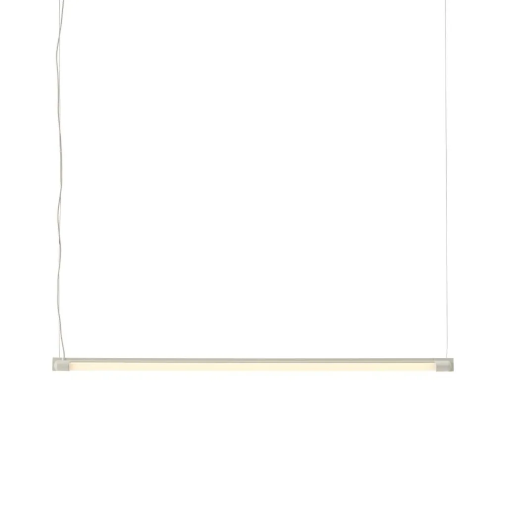 Industrielle Röhrenleuchten dienten dem Stockholmer Designstudio als Inspiration für die Fine LED Pendelleuchte 90cm. Sie ist als sehr schlicht gehaltenes Röhre mit einem Lichtband mit einem Abstrahlwinkel von 320 Grad konzipiert. Als Material kommt druckgegossenes und pulverbeschichtetes Aluminium mit einem transparenten Blendschutz aus Kunststoff zum Einsatz. Zwei Endkappen aus Aluminium fassen das Lichtband ein. Das integrierte Leuchtmittel hat eine Lebensdauer von 35.000 Stunden und ist in seiner Lichtstärke dimmbar. Die Pendelleuchte wird für die horizontale Aufhängung mit einem Baldachin aus Kunststoff sowie zwei dünnen Drähten und deren Haltern an der Decke montiert. Optional ist unter Verwendung von lediglich einer Kordel eine vertikale Aufhängung möglich.