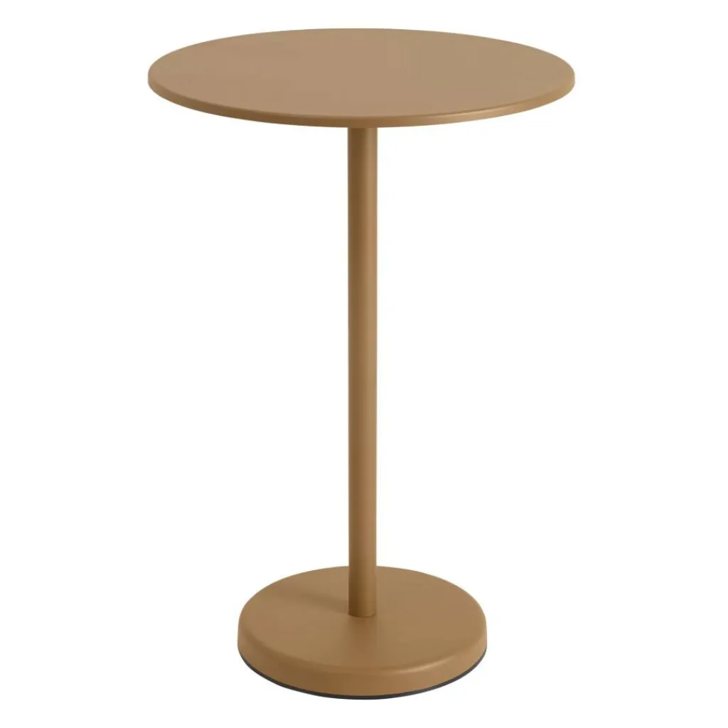 Durch die Verwendung robuster Materialien hat der in verschiedenen Farben erhältliche Linear Steel Bistrotisch Ø70 x H105cm eine lange Lebensdauer. Die Pflege ist einfach: Schmutz kann mit einem feuchten Tuch entfernt werden. Für hartnäckigen Schmutz empfiehlt sich ein mildes Reinigungsmittel. Der 25,3kg schwere Tisch ist 105cm hoch. Auf der Tischplatte mit einem Durchmesser von 70cm können Speisen und Getränke oder andere Utensilien abgestellt werden. Aus der Serie gibt es passende Stühle oder Tische mit eckigen Tischplatten.