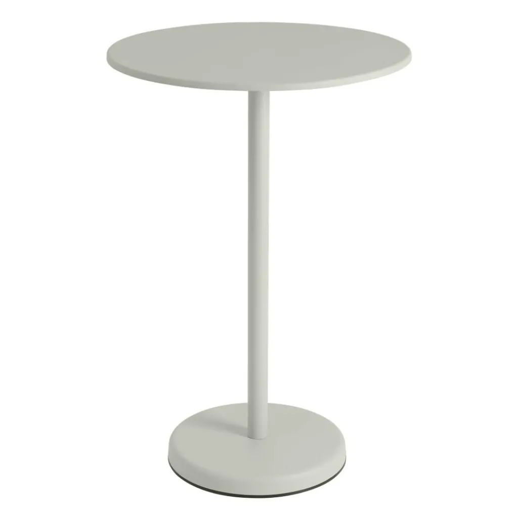 Der im Jahr 2020 entworfene Linear Steel Bistrotisch Ø70 x H105cm eignet sich für Innenräume und den Outdoorbereich. Er ist in Cafés ebenso zu finden wie auf privaten Balkonen und Terrassen. Die Tischplatte und das Gestell sind aus verzinktem Stahl hergestellt. Die Oberfläche ist mit einer matten Pulverbeschichtung versehen, die den Tisch witterungsbeständig und UV-resistent macht. So behält der Linear Steel Bistrotisch Ø70 x H105cm auch bei direkter Sonneneinstrahlung seine Farbe. An der Unterseite sind Plastikgleiter montiert, die empfindliche Böden schonen.
