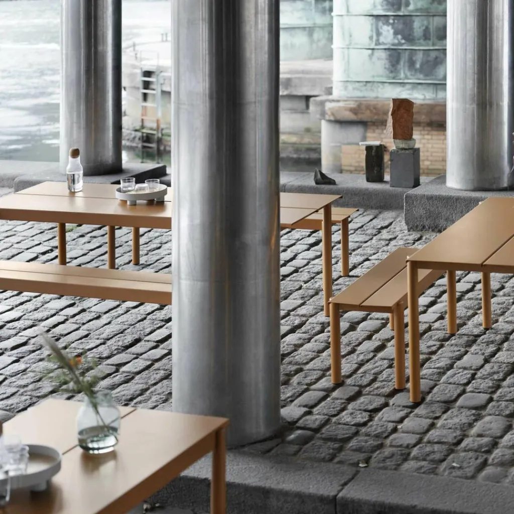 Der Linear Steel Gartentisch 200x75cm wurde von Thomas Bentzen für die Marke Muuto entworfen. Der dänische Designer setzte seinen Vorsatz, haltbare und stilvolle Möbel für den Außenbereich zu schaffen, mit der Linear-Steel-Kollektion perfekt um. Sie besteht aus unterschiedlichen Garten- und Bistrotischen sowie dazu passenden Sitzgelegenheiten.