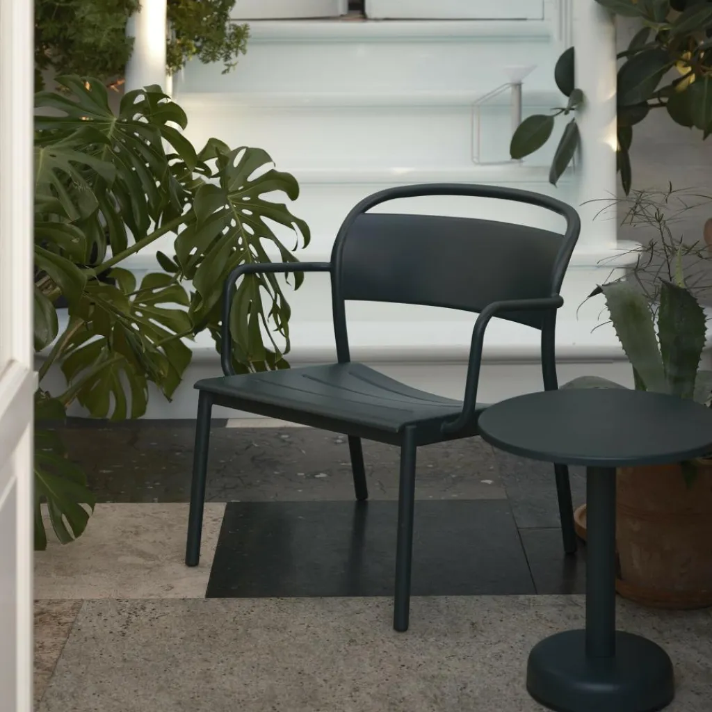 Der Linear Steel Lounge Gartenarmlehnstuhl wurde von Thomas Bentzen für die Marke Muuto entworfen. Mit den namensgebenden klaren Linien sorgt der dänische Designer bei diesem Modell für eine unaufdringliche, zeitlose Ästhetik im Außenbereich.
