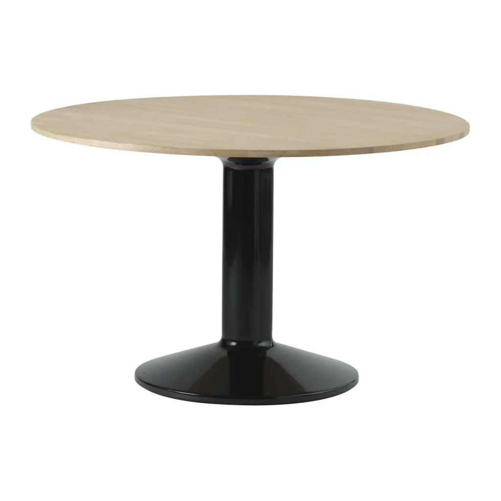 Dieser Midst-Esstisch hat einen Durchmesser von 120cm. Er misst 73cm in der Höhe und wiegt 49kg. Es stehen verschiedenfarbige Basen zur Auswahl. Als Alternative zum Midst Esstisch Ø120cm Eiche sind Ausführungen mit anderen Tischplatten zu haben. Darüber hinaus gibt es eine größere Modell-Variante aus der Midst-Reihe.