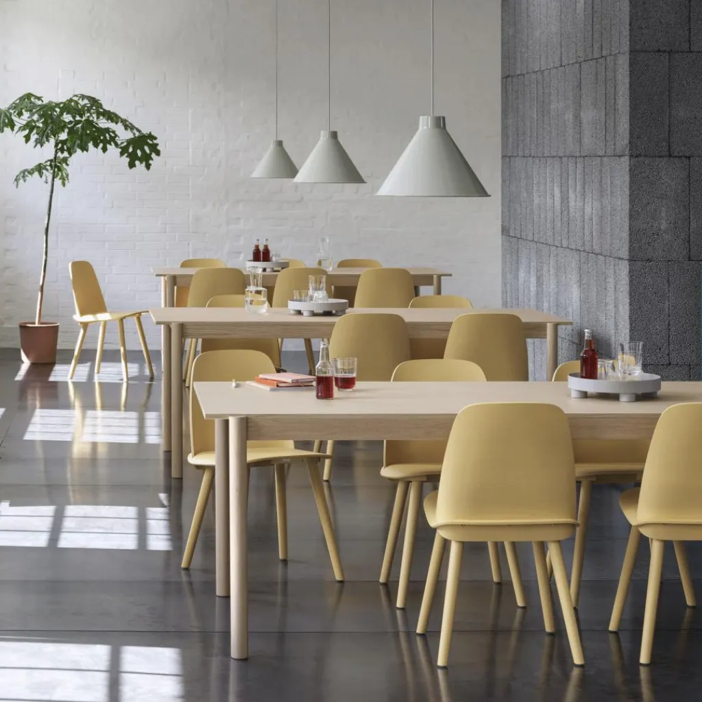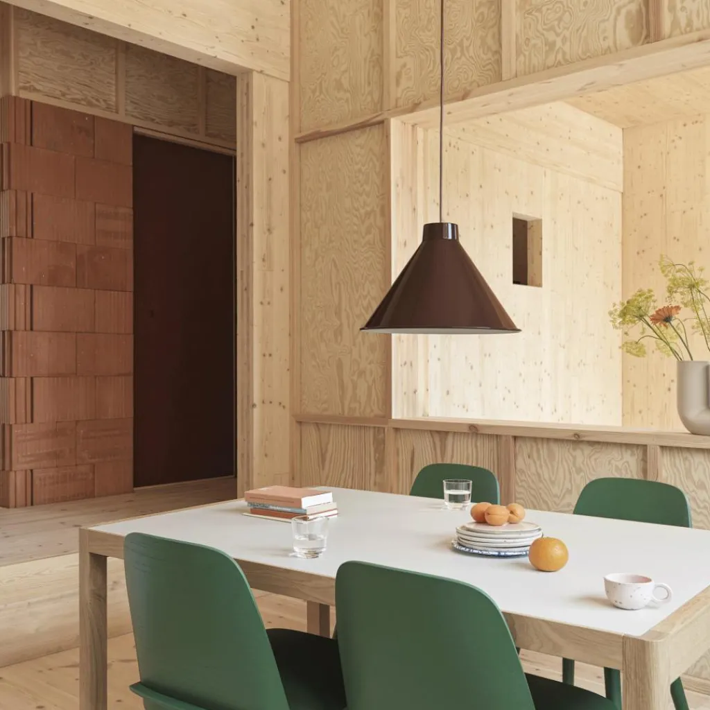Die Top LED Pendelleuchte Ø 38cm wurde vom Designstudio Big-Game für die Marke Muuto entworfen. Sie ist Teil einer Kollektion von zeitgemäßen Leuchten, die den klassischen Kegelschirm mit einer modernen Optik ausstattet.