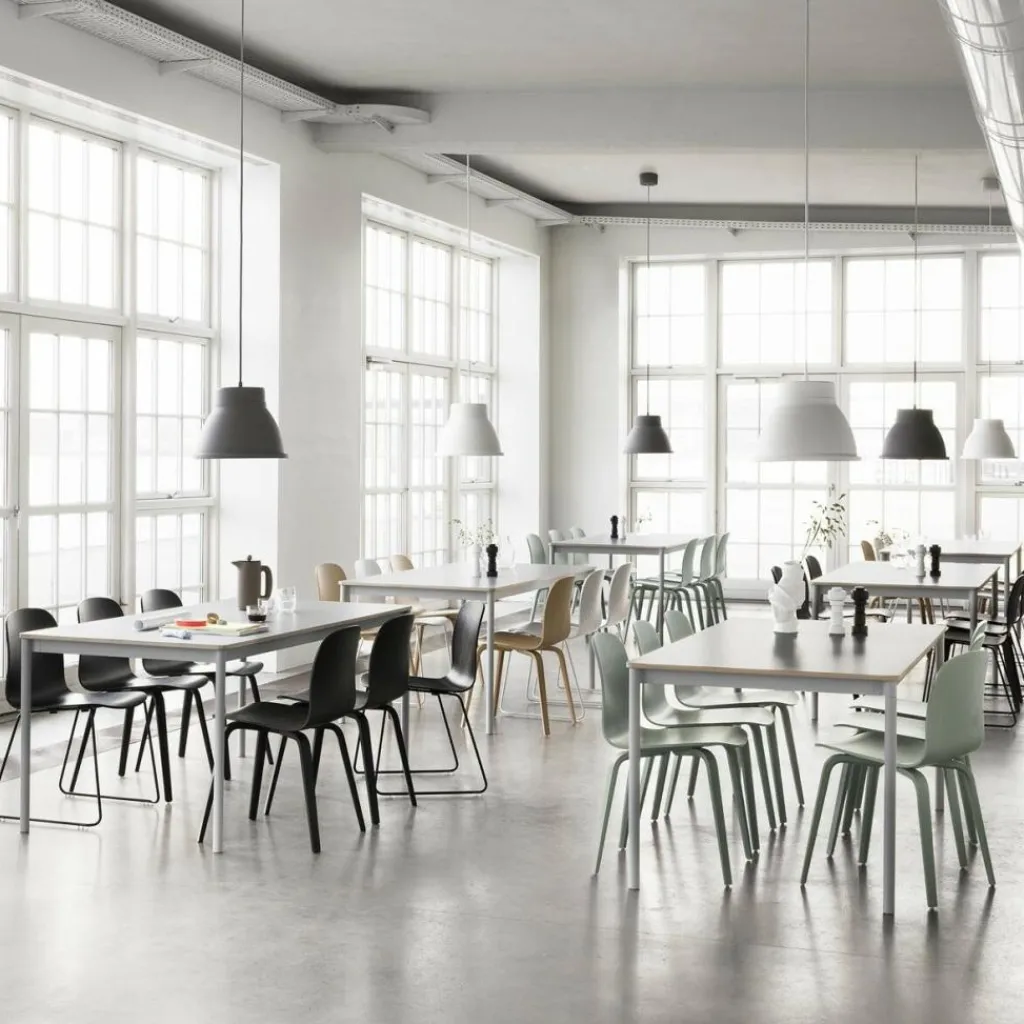 Neben dem Visu Stuhl mit Kufengestell von muuto führen wir auch den Visu Stuhl mit Holzgestell.