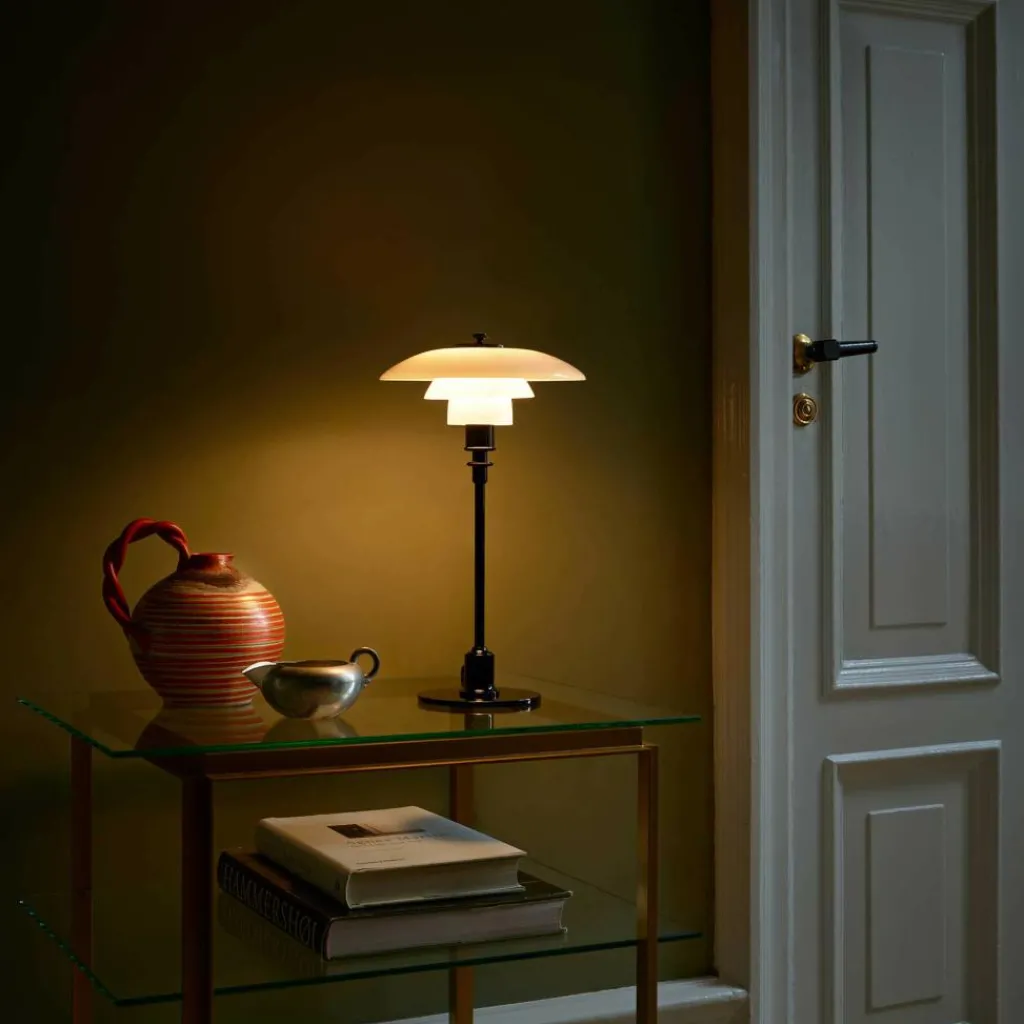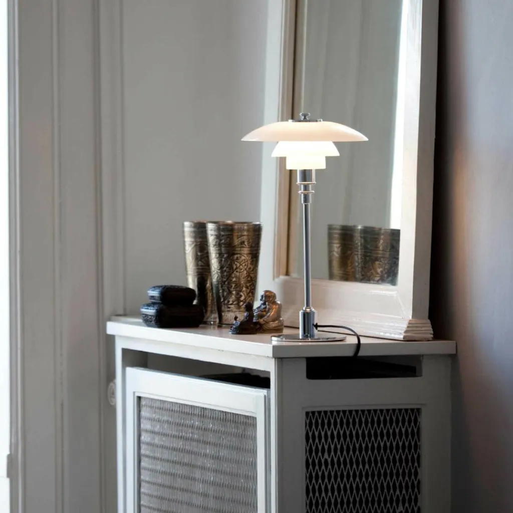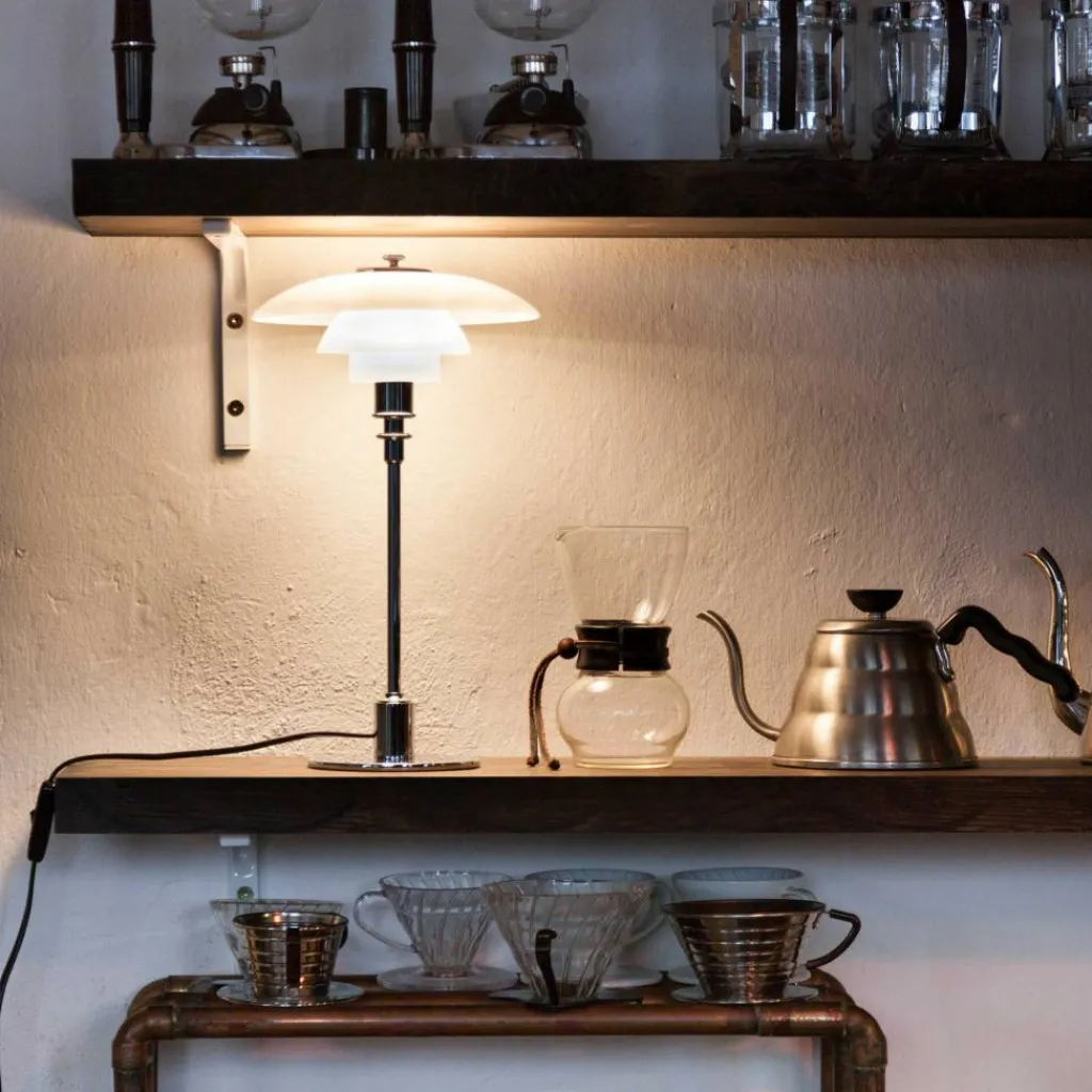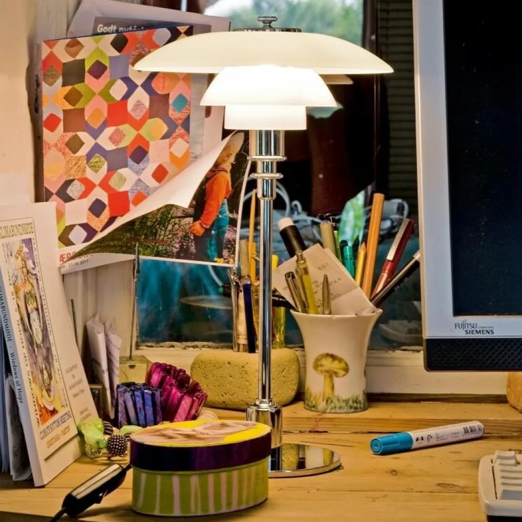 Setzen Sie mit der PH 2/1 Tischleuchte elegante Akzente. Ihr Büro, Schreibtisch oder Beistelltisch bietet dafür einen exzellenten Platz. Aufgrund des zeitlosen Designs fügt sich die Leuchte nahtlos in sämtliche Einrichtungsstile ein, egal, welche kulturellen Gegebenheiten vorhanden sind. Eine Tischleuchte für seriöse Statements.