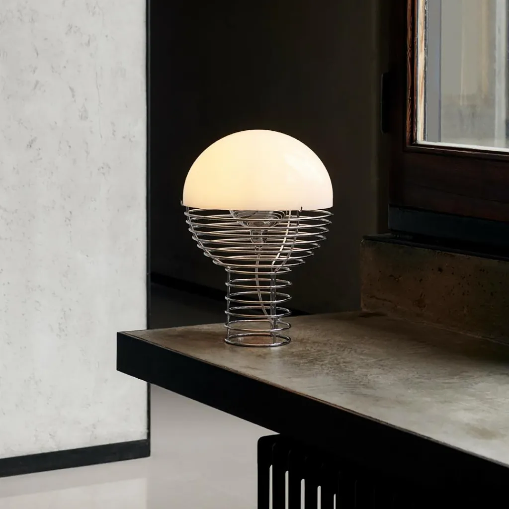 Die Wire Panton Tischleuchte wurde 1972 vom Designer Verner Panton für den Hersteller Verpan entworfen. Die große Nachfrage nach diesem Designklassiker führte dazu, dass die einzigartige Leuchte im Jahre 2009 vom Hersteller neu aufgelegt wurde. Ihre beeindruckende, unkonventionelle Form hat maßgeblich zu dem lang anhaltenden Erfolg beigetragen. Die interessante Kombination aus Drahtgestell und Kunststoff erinnert an eine Glühbirne.
