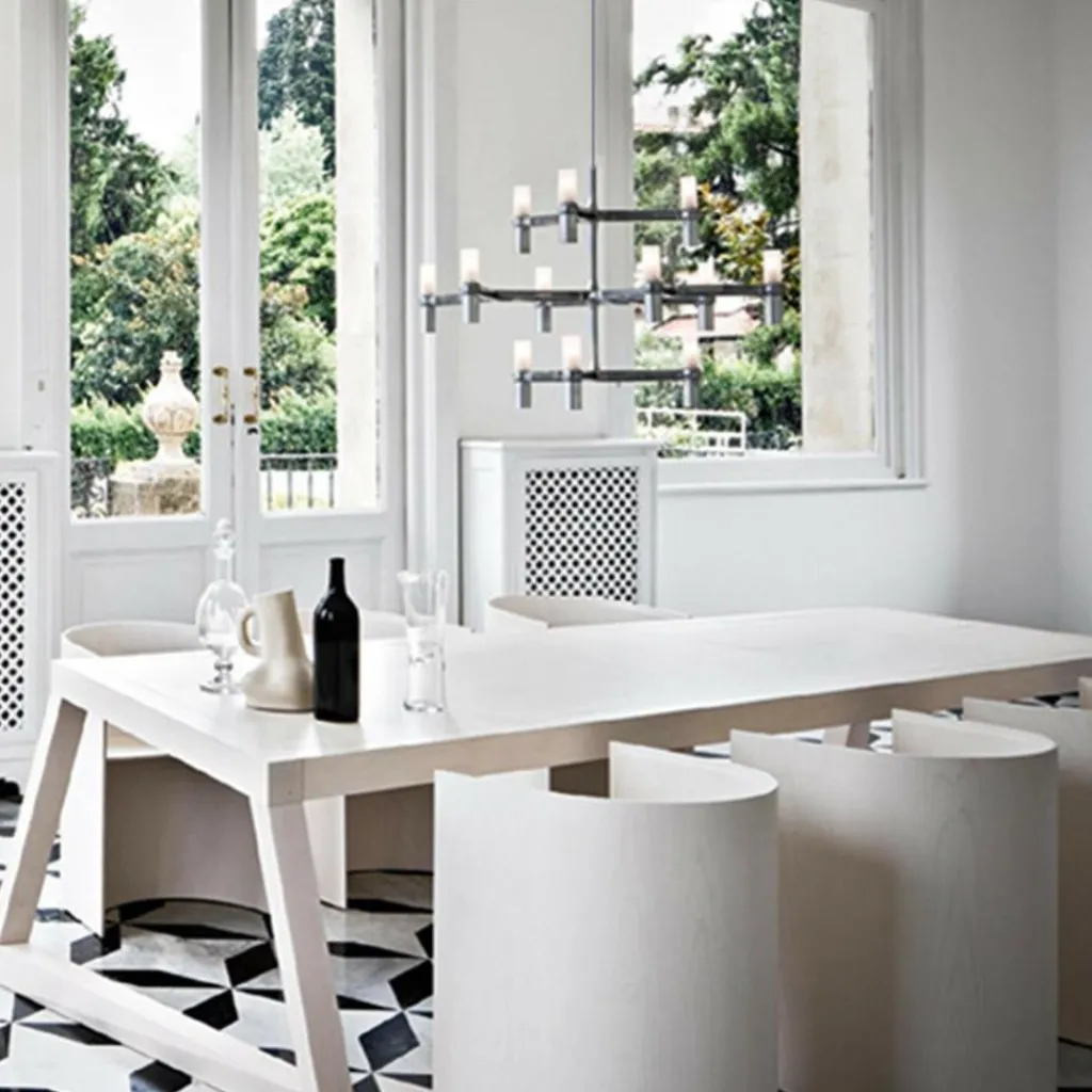 Kronleuchter strahlen ein ganz besonderes Flair aus: den Glamour vergangener Tage, Opulenz, Eleganz – die Crown Pendelleuchte von Nemo übersetzt die ursprüngliche Form des Kronleuchters ins Abstrakte. So fügt sich der Crown Kronleuchter harmonisch auch in ein modernes Ambiente ein, Sie können mit Crown aber auch in einem Altbau beispielsweise einen raffinierten Kontrast zu einer Stuckdecke setzen.