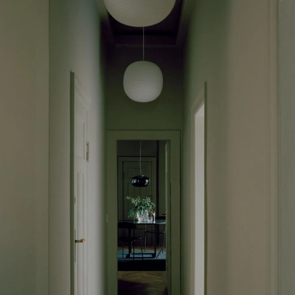 Die beiden Designer ließen sich bei der Lantern Pendelleuchte L von traditionellen Leuchten aus Reispapier inspirieren. Der Leuchtenschirm sieht den nostalgischen Modellen verblüffend ähnlich. Allerdings besteht er nicht aus dünnem Papier wie das Original, sondern aus Opalglas. In einem speziellen Verfahren entstehen die für die Lantern Pendelleuchte L typischen Rillen im Leuchtenschirm. Wie der Mond am Himmel scheint die Lantern Pendelleuchte L im Raum zu schweben. Die schlichte Leuchte lässt sich vielseitig verwenden: Sie spendet über dem Esstisch platziert stimmungsvolles Licht bei jeder Mahlzeit, bereichert Konferenzräume und auch Büros. Aus dem opalen Leuchtenschirm dringt blendfreies und diffuses Licht in den Raum.