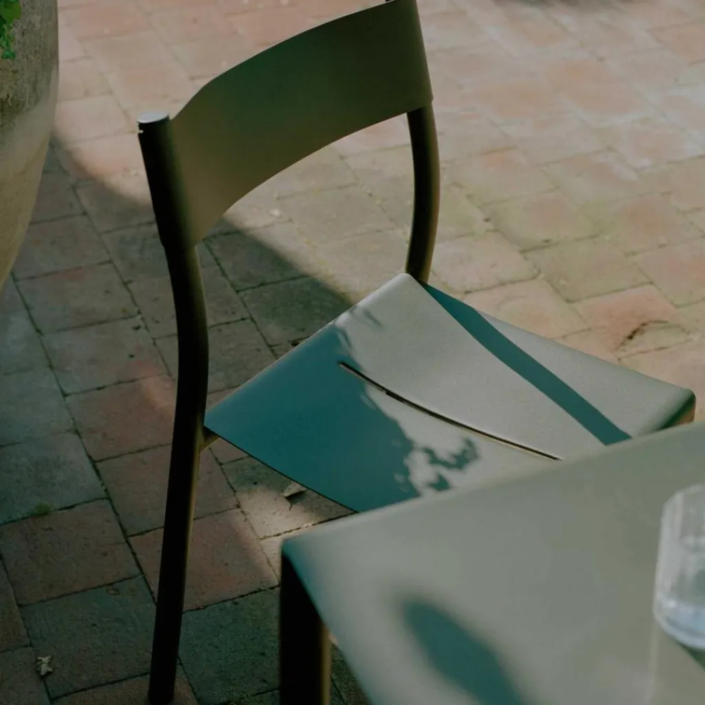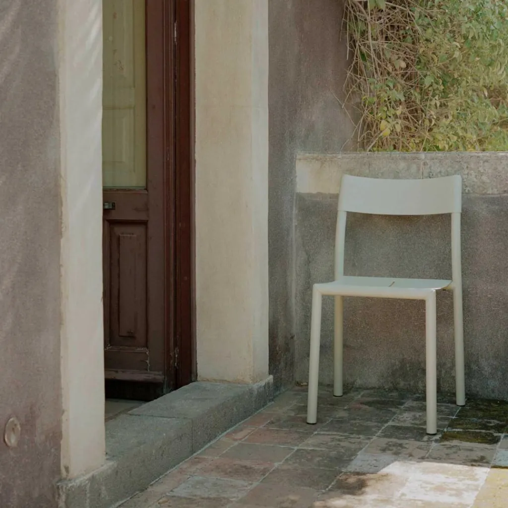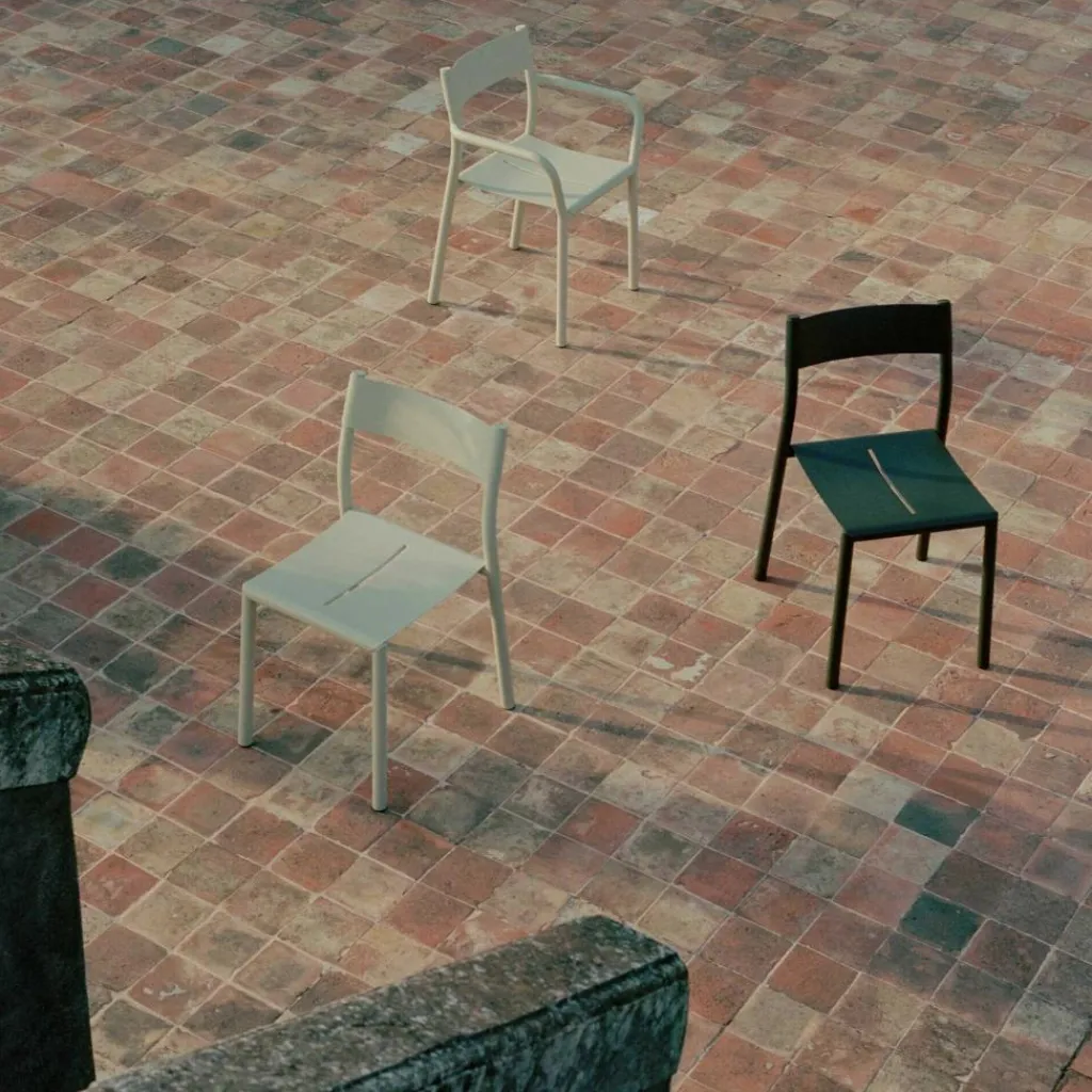 Der May Gartenstuhl wurde von Hannes & Fritz für die Marke New Works entworfen. Er ist Teil der May-Kollektion aus dem Jahr 2023 mit Gartenmöbeln im puristischen Design, die namensgebend im frühlingshaften Mai Lust auf die ersten Sonnenstunden im Freien machen.