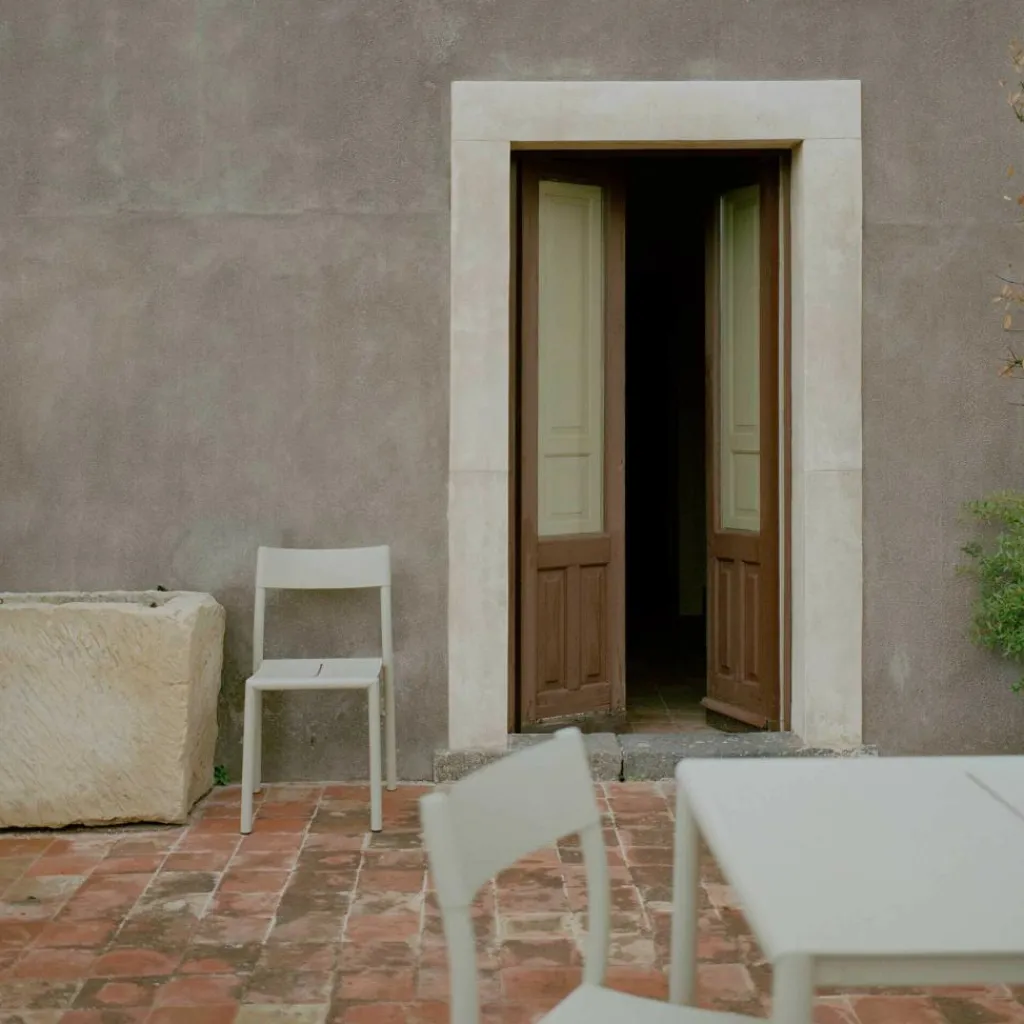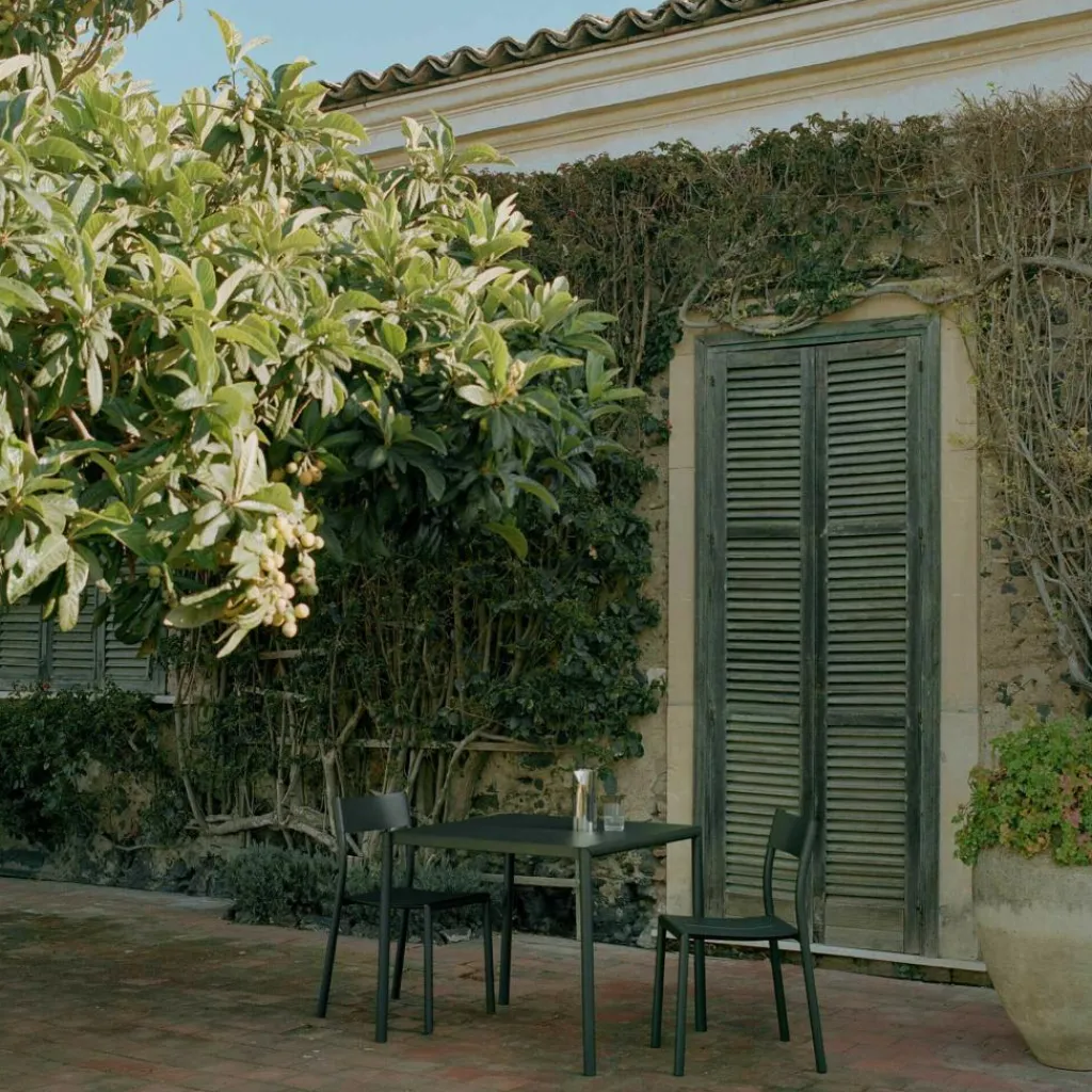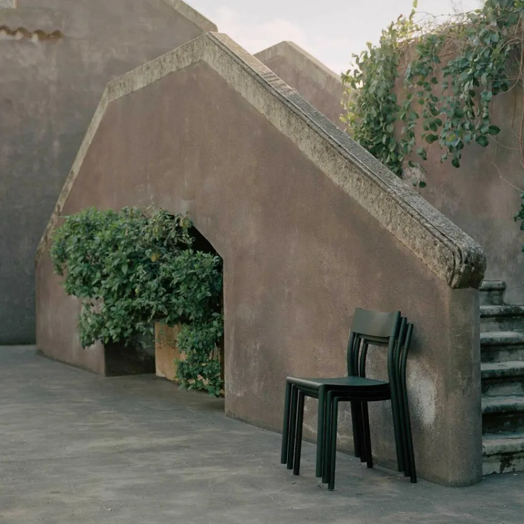 Der May Gartenstuhl wurde von Hannes & Fritz für die Marke New Works entworfen. Er ist Teil der May-Kollektion aus dem Jahr 2023 mit Gartenmöbeln im puristischen Design, die namensgebend im frühlingshaften Mai Lust auf die ersten Sonnenstunden im Freien machen.