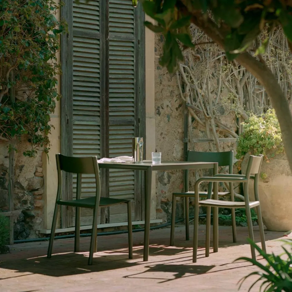 Es gibt den May Gartenstuhl alternativ in einer designgleichen Variante mit bequemen Armlehnen. Passende Gartentische in verschiedenen Größen aus der Kollektion ergänzen die Sitzgruppe im Freien, auf der Terrasse oder dem Balkon. Zur Reinigung empfiehlt sich ein weiches Tuch.