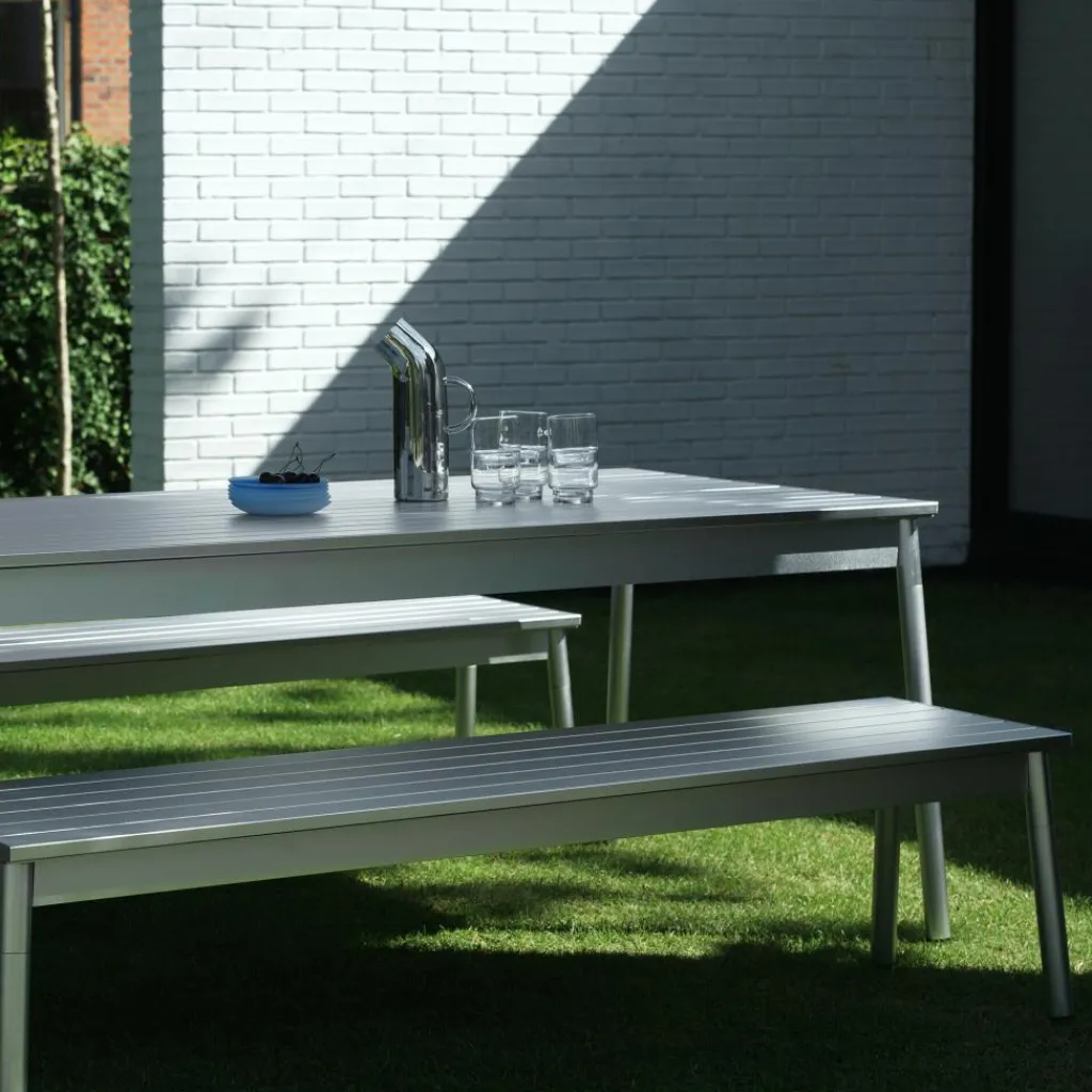 Die Ex Gartenbank 173x42cm von Normann Copenhagen ist ein Ausdruck moderner Zurückhaltung und technischer Raffinesse. Entworfen von Simon Legald, vereint sie klare Linien mit präziser Materialverarbeitung und schafft damit eine Form, die zeitgemäß wirkt, aber dennoch über Trends hinaus Bestand hat.