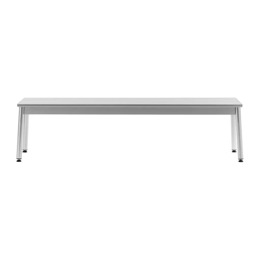 Mit einer Breite von 173 cm, einer Höhe von 45 cm und einer Tiefe von 42 cm bietet die Bank großzügigen Platz und fügt sich dennoch dezent in verschiedenste Außenbereiche ein. Gefertigt aus stranggepressten Aluminiumprofilen und veredelt durch eine anodisierte Oberfläche, überzeugt die Ex Gartenbank 173x42cm durch hohe Witterungsbeständigkeit, Leichtigkeit und Langlebigkeit. Das Aluminium trotzt Regen, Sonne und Temperaturschwankungen – und bewahrt dabei dauerhaft seine elegante Optik. Die Sitzfläche ist aus feinen, leicht voneinander abgesetzten Profilen gefertigt, wodurch eine klare, luftige Struktur entsteht, die von vier sanft ausgestellten Beinen getragen wird. Das sorgt nicht nur für visuelle Leichtigkeit, sondern auch für eine äußerst stabile Konstruktion. Trotz ihres robusten Charakters bringt die Ex Gartenbank 173x42cm nur 20,3 kg auf die Waage und lässt sich leicht versetzen oder umplatzieren. Sie wird flach verpackt geliefert und lässt sich mit wenigen Handgriffen montieren. Für die Reinigung genügt ein feuchtes Tuch – unkompliziert und alltagstauglich.