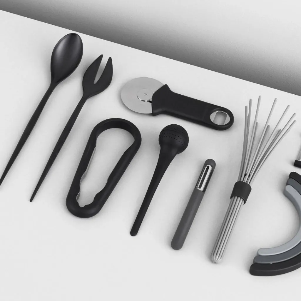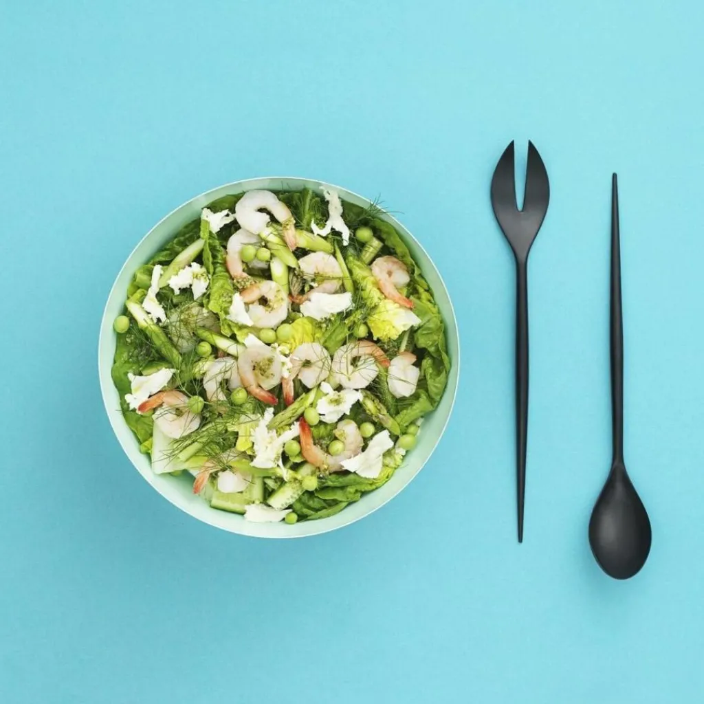 Das Krenit Salatbesteck von Normann Copenhagen ist aus robustem Melamin gefertigt und spülmaschinenfest. Mit einer Länge von 30 cm liegt das Besteck gut in der Hand. Erhältlich ist das Salatbesteck in Schwarz und Weiß jeweils matt – mehr dazu erfahren Sie unter „Produktvarianten“.