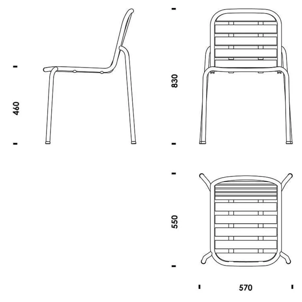 Der moderne Stuhl ist 57cm breit, 55cm tief und 83cm hoch. Die Sitzhöhe beträgt 46cm, während das Gewicht bei 8,5kg liegt. Der Stuhl ist Teil einer Kollektion stapelbarer Gartenmöbel, die vielfältige Möglichkeiten für die Gestaltung des Außenbereichs bietet. Vig umfasst auch einen Gartenstuhl mit Armlehnen und eine schlichte Gartenbank.