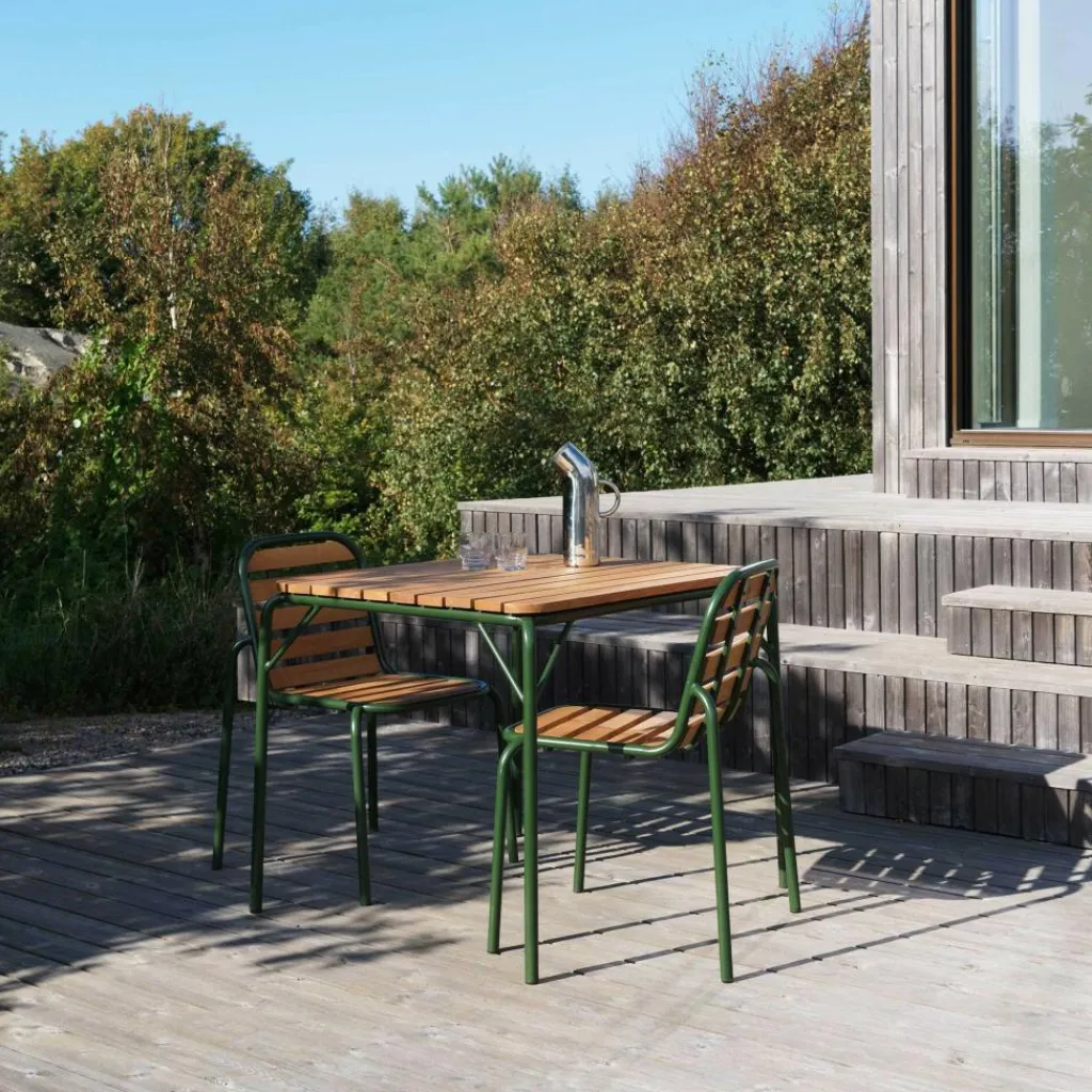 Der Vig Gartenstuhl wurde von Simon Legald für die Marke Normann Copenhagen entworfen. Eine zeitlose Ästhetik und ein hohes Maß an Funktionalität machen den Stuhl zu einer idealen Wahl, wenn es um langlebige Outdoormöbel geht.