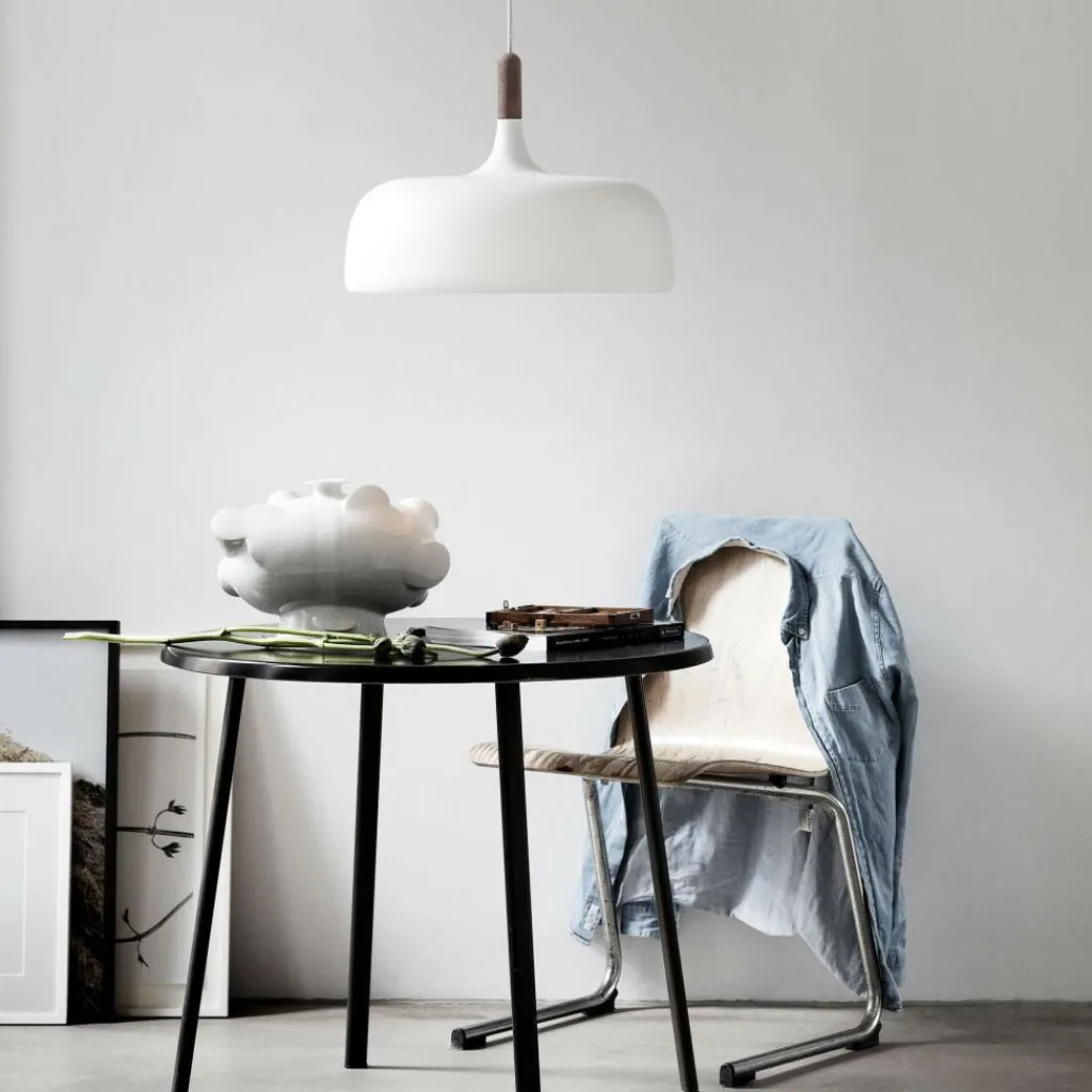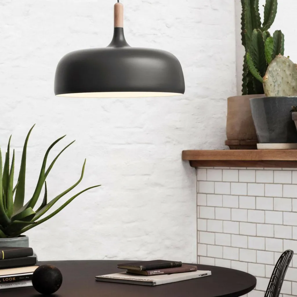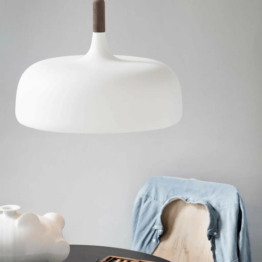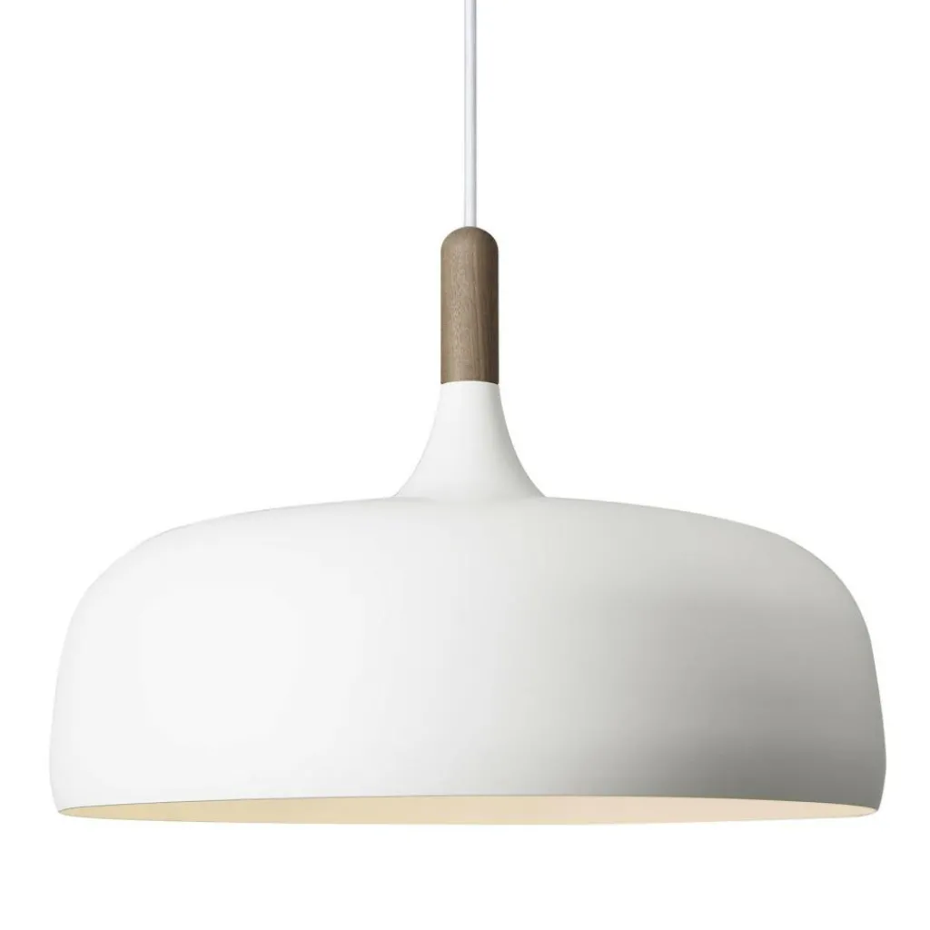 Mit ihrer organischen Form passt sich die Acorn Pendelleuchte jedem Umfeld an. Der Leuchtenschirm wird aus Aluminium gefertigt. Einen Bezug zur Natur stellt nicht nur die Form dar: Auch die Holzapplikationen am Übergang zum Kabel und zur Deckenbefestigung tragen zum harmonischen Gesamtbild bei. Die Deckenrosette hat einen Durchmesser von 18 cm. Die mit einem externen Dimmer kombinierbare Leuchte ist in verschiedenen Farben erhältlich. Bei allen Varianten ist der Leuchtenschirm an der Innenseite weiß gehalten. Somit werden die Lichtstrahlen gut reflektiert und nach unten weitergeleitet. Die Acorn Pendelleuchte wird gerne für den Ess- oder Konferenztisch verwendet. Sie eignet sich für den privaten und geschäftlichen Bereich.