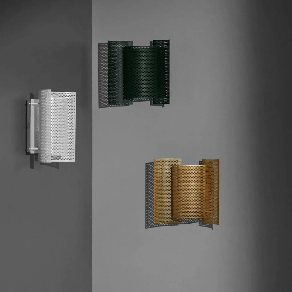 Ein Schmetterling diente dem norwegischen Designer als Vorbild für die Butterfly Perforated Wandleuchte. Die dreiteilige Leuchte gibt es aus Stahl oder aus Messing. Auffallend ist, dass alle Elemente aus perforiertem Material gefertigt sind. Die kleinen Löcher verleihen der Leuchte ein filigranes Aussehen. Die Butterfly Wandleuchte perforiert zeichnet sich durch Eleganz und ihren schlichten Stil aus. Sie besteht aus einem halbrund gebogenen Element, in dem sich das Leuchtmittel verbirgt. Links und rechts ist je ein leicht nach außen gebogenes Element befestigt, das ein wenig an die Flügel von Schmetterlingen erinnert. Die Butterfly Wandleuchte perforiert leitet den Lichtstrahl nach oben und unten weiter. Außerdem scheint Licht durch den perforierten Leuchtenschirm durch.