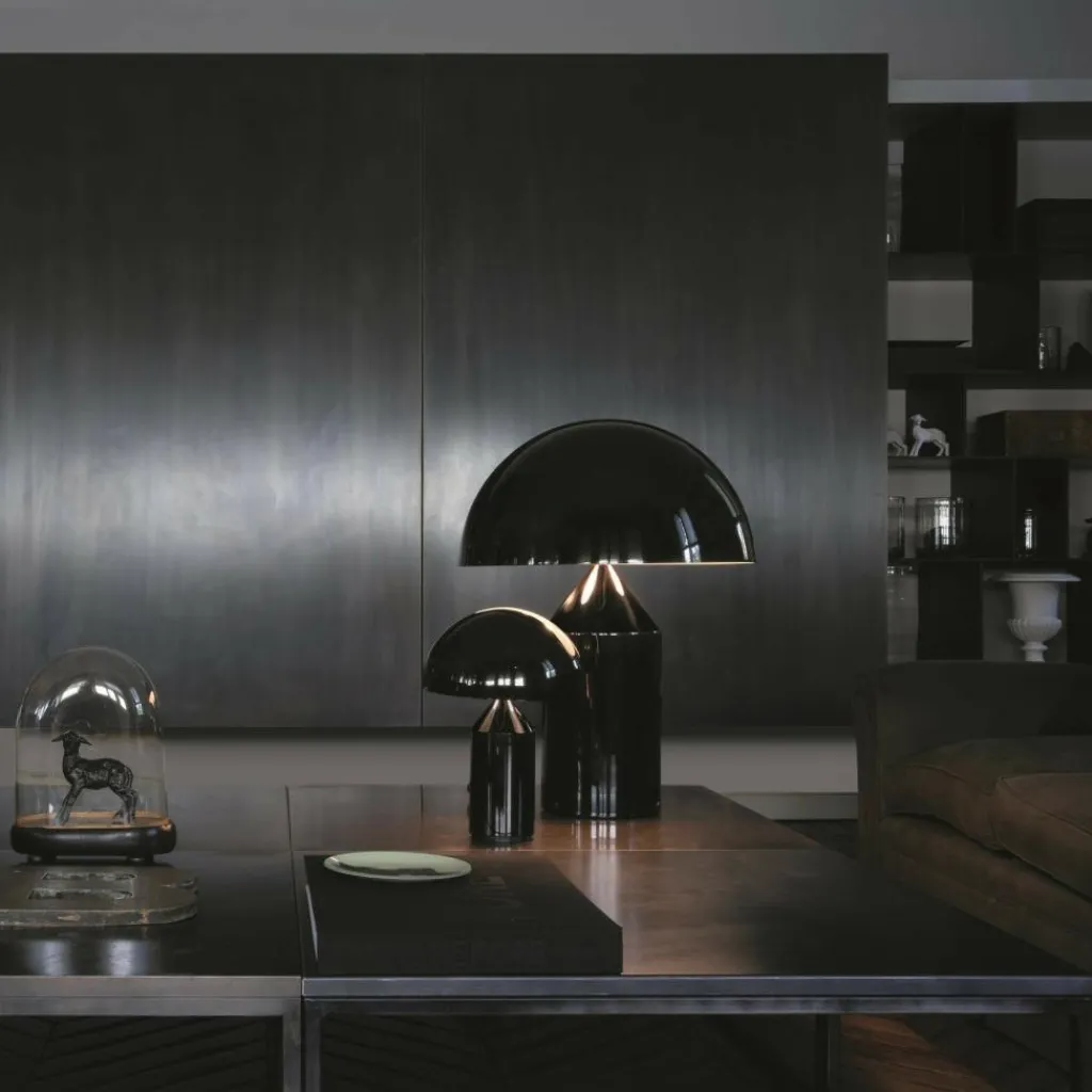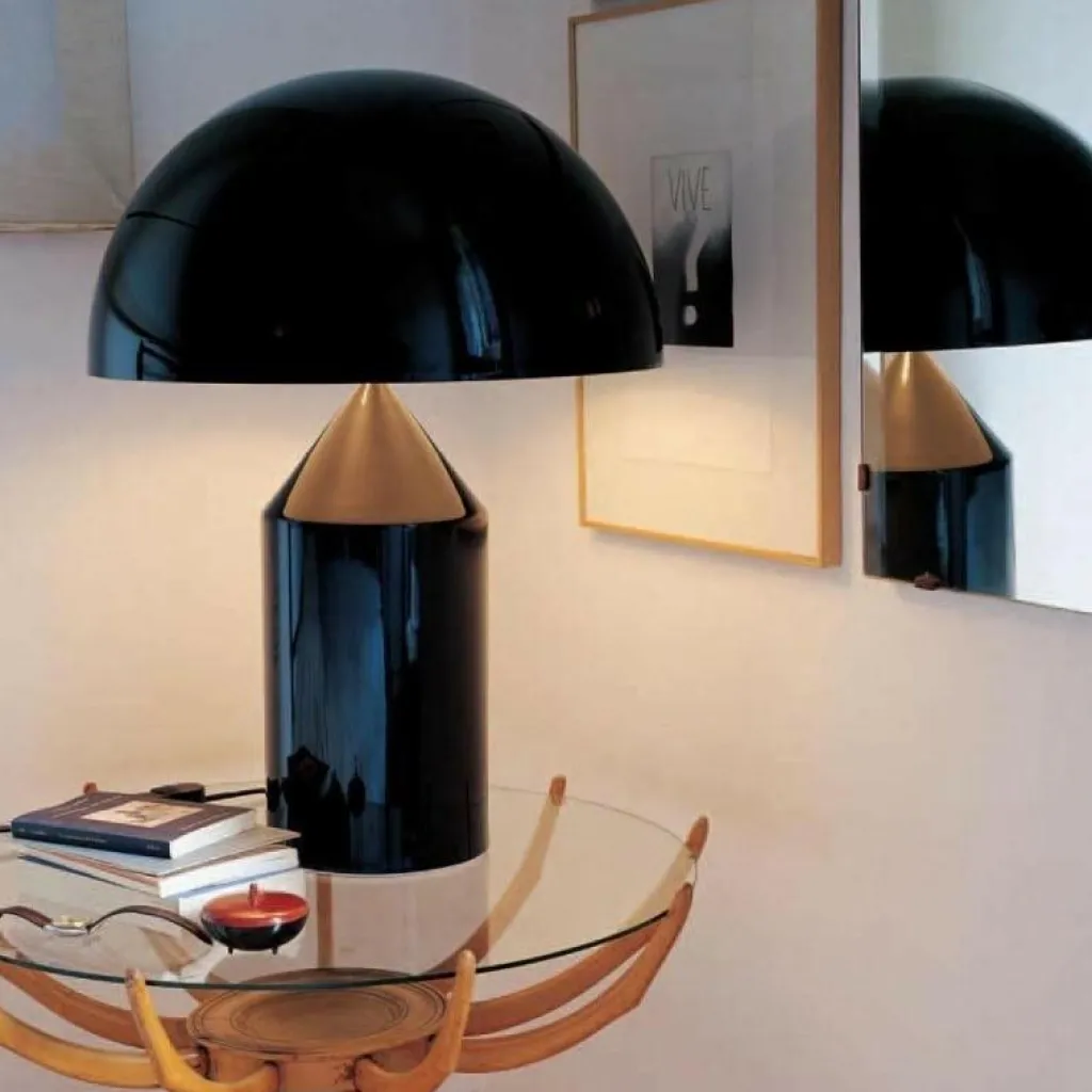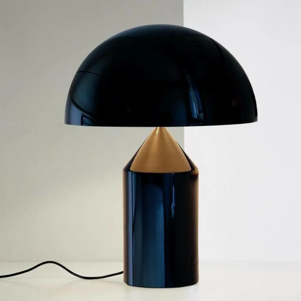 Die Atollo Tischleuchte schwarz wurde von dem Designer Vico Magistretti für die Marke Oluce entworfen. Für das Modell hat der Italiener zahlreiche Auszeichnungen erhalten – darunter im Jahr 1979 den Preis Compasso d’Oro. Inspiration fand Magistretti offenbar in der Natur: Die Atollo Tischleuchte schwarz erinnert nämlich an einen Pilz. Auffallend ist der Schirm in Form einer Halbkugel, der auf einem Zylinder sitzt, der sich nach oben hin zu einer Spitze verjüngt. Erhältlich ist das Modell in drei Varianten mit 70 x 50 cm, 50 x 38 cm und 35 x 25 cm in Höhe und Durchmesser.