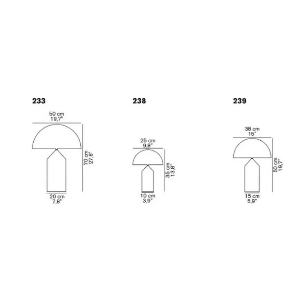 Sowohl der innen weiße Leuchtenschirm als auch der Standfuß sind aus Aluminium gefertigt. Daran ist ein 200 cm langes Kabel montiert, das eine flexible Standortwahl ermöglicht. Die Atollo Tischleuchte schwarz ist eine Bereicherung für jeden Arbeitsbereich oder für das Schlafzimmer. Das Licht, das bei den beiden großen Leuchten über den Schalter dimmbar ist, wird nach unten geleitet. So entsteht keine Blendung und dennoch sorgt die Atollo Tischleuchte schwarz für beste Lichtverhältnisse beim Arbeiten oder Lesen. Je nach Größe des Modells sind unterschiedliche Leuchtmittel notwendig: Die kleine Variante benötigt Leuchtmittel mit der Fassung E14, die größeren Modelle mit E27-Fassung. Die Leuchtmittel sind im Lieferumfang nicht enthalten, können aber unter Zubehör mitbestellt werden.