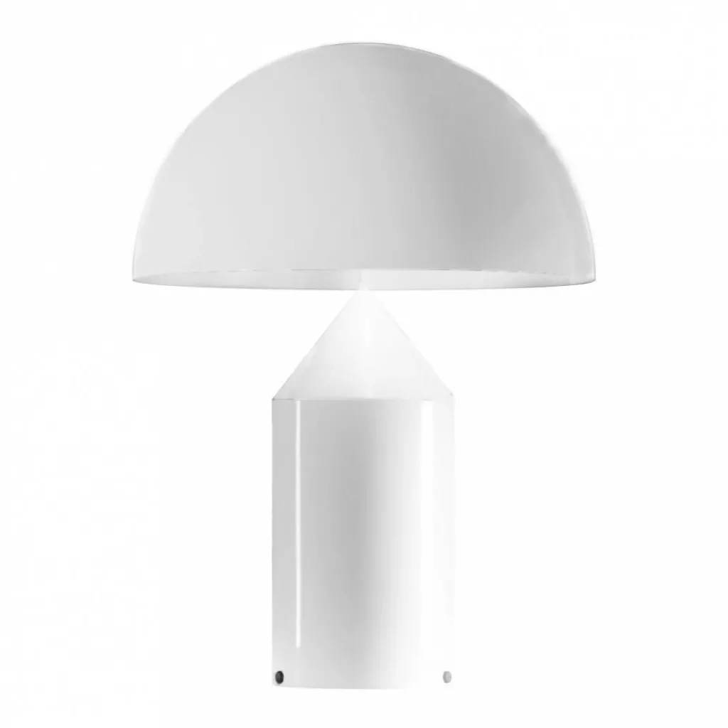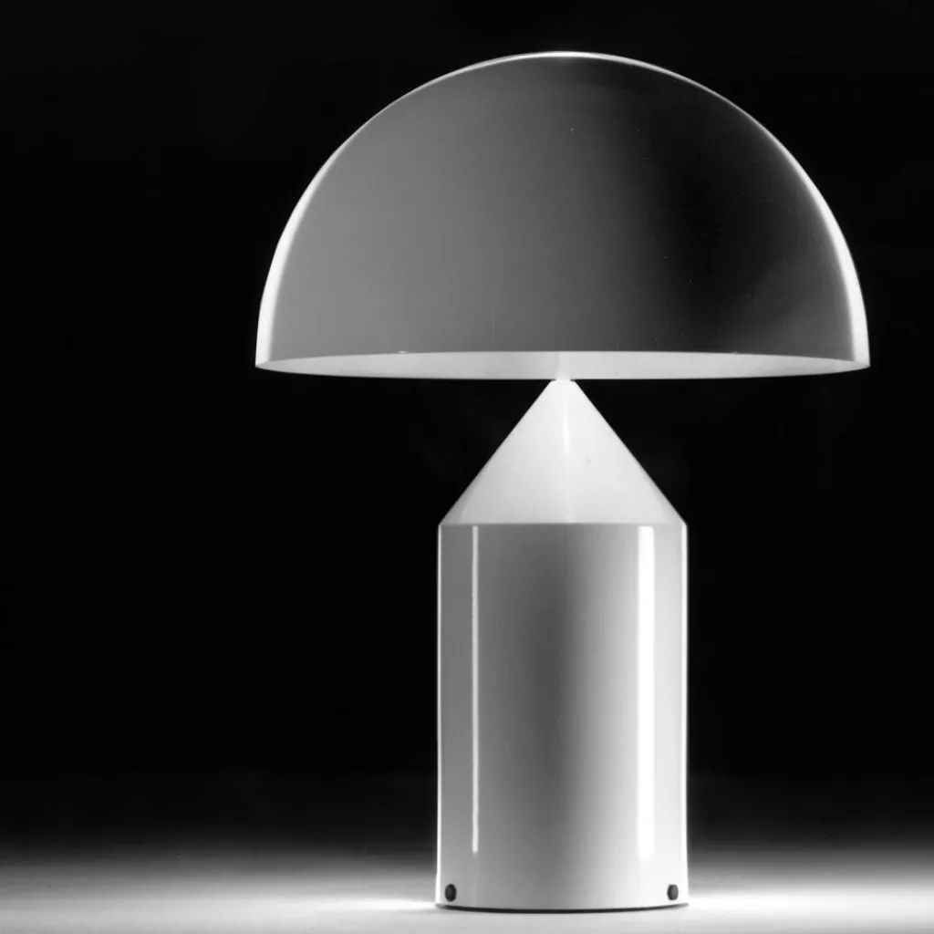 Die Atollo Tischleuchte weiß wurde von Vico Magistretti für die Marke Oluce entworfen. In dem Entwurf wird einmal mehr deutlich, wie gerne der italienische Stardesigner mit geometrischen Formen spielt. Ganz deutlich erinnert die Atollo Tischleuchte weiß an einen stilisierten Pilz.