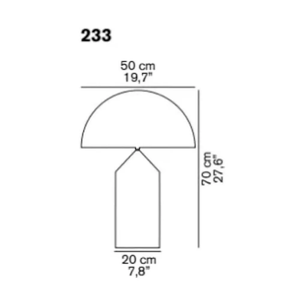 Mit dem integrierten Dimmer lässt sich die Helligkeit an die persönliche Vorliebe anpassen. Die 70 cm hohe Leuchte ist perfekt für den Arbeitsplatz zu Hause oder im Büro geeignet. Auch im Schlafzimmer verbreitet sie extravagantes Ambiente. Die Atollo Tischleuchte weiß ist 70 cm hoch, der Schirm hat einen Durchmesser von 50 cm. Der Fuß erreicht eine Diagonale von 20 cm. Mit einem 200 cm langen Kabel wird die Leuchte an den Stromkreis angeschlossen. Die Leuchte benötigt zwei Leuchtmittel mit einer E27-Fassung, die unter Zubehör mitbestellt werden können.