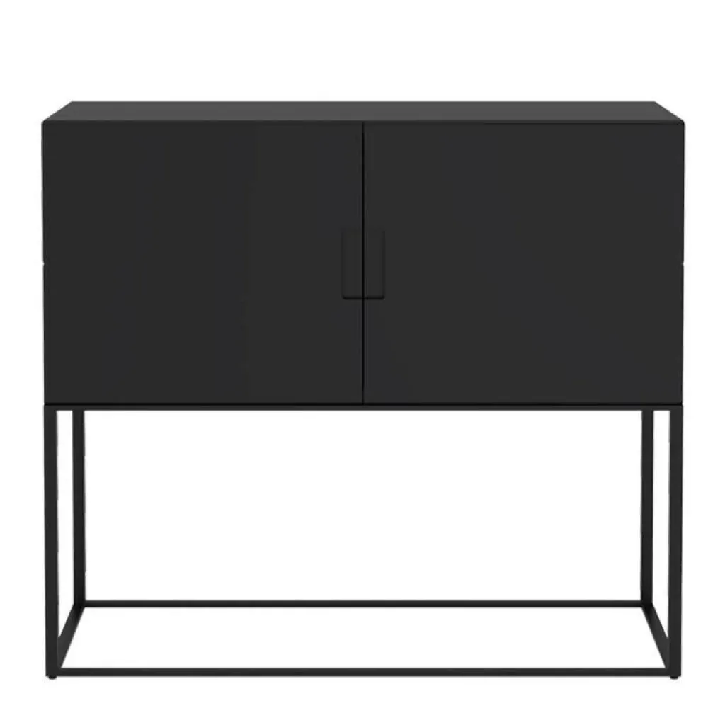 Sicheren Stand gewährleistet dem Sideboard ein Gestell aus Stahlrohr. Es ist rechteckig geschnitten. Das Sideboard ist 31 kg schwer. Die Höhe beträgt 78 cm und die Tiefe 38 cm. Das Möbelstück ist 90 cm breit. Dank seines schlichten Designs harmoniert es mit moderner und traditioneller Einrichtung.