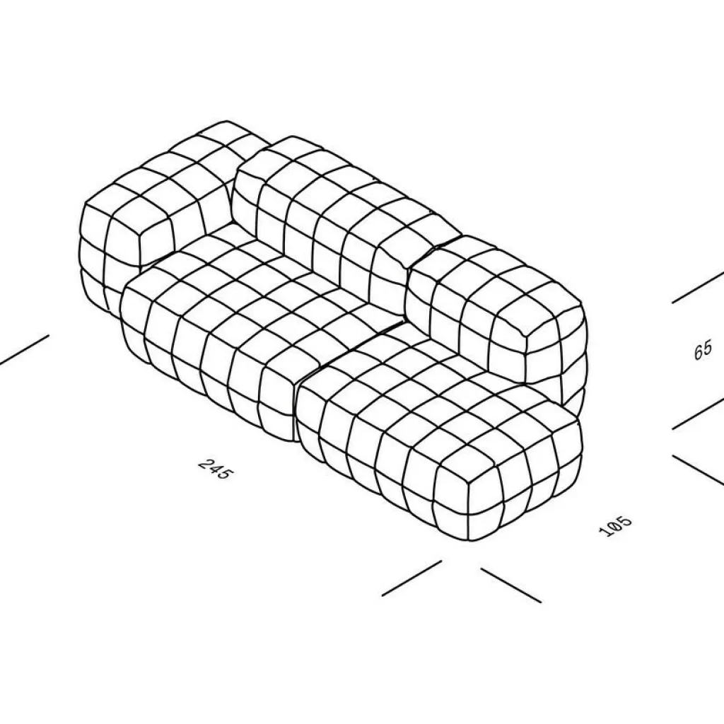 | Abmessungen | Breite: 245cm Höhe: 65cm Tiefe: 105cm Sitzhöhe: 39cm Höhe Armlehne: 56.5cm |