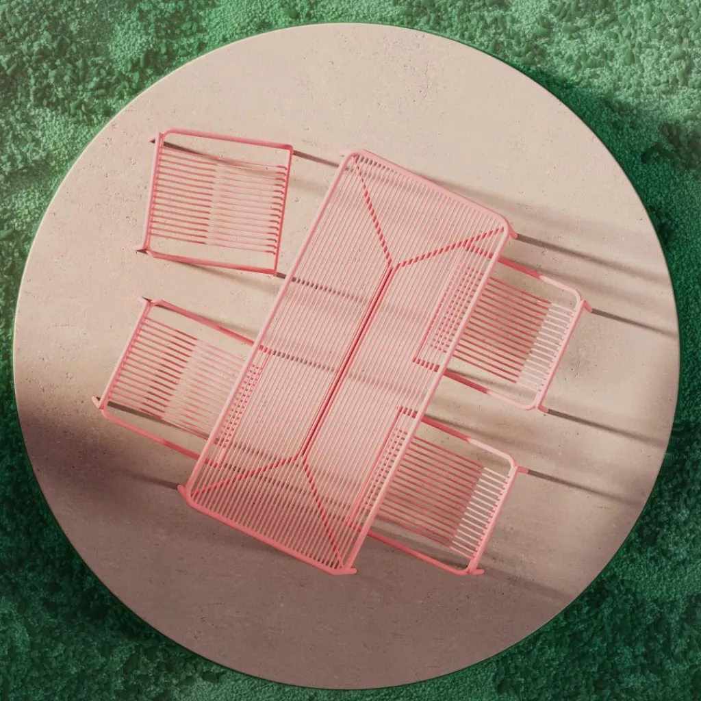 Der Ivy Gartenesstisch 170x90cm wurde für die Marke OUT Objekte unserer Tage entworfen. Er ist Teil einer Serie von Gartenmöbeln aus Stahl. Damit lassen die Ivy-Modelle an Konstruktionen zeitgenössischer Architektur denken. Die auffälligen Farben verleihen den Designstücken zudem einen peppigen Touch.