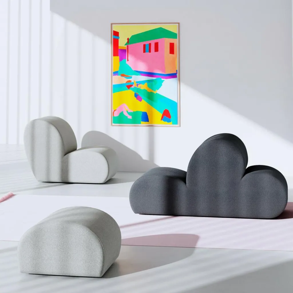 Im Gegensatz zu seiner organisch gewölbten Oberseite sind die Seitenwände des Levi Loungesessels vollkommen gerade. Damit wirkt das moderne Sitzmöbel, als wäre es aus einer voluminösen Wolke geschnitten. Doch nicht nur die Form mit ihrer stark gewölbten Sitzfläche und der hohen Rückenlehne verspricht pure Gemütlichkeit. Auch die Nosagunterfederung und die Polsterung, die aus Polyschaum besteht, verspricht einen watteweichen Sitzkomfort. Dank Memory-Technologie nimmt der Sitz des Levi Loungesessels immer wieder seine ursprüngliche Form ein. Damit die flauschige Wolke zum Sitzen auch stabil auf dem Boden steht, ist sie mit einem stabilen Untergestell aus Sperrholz versehen. Ein hochwertiger Bezugsstoff macht das futuristische Sitzmöbel strapazierfähig. Es fügt sich perfekt in ein modernes Wohnzimmer ein und eignet sich gut als Lesesessel.