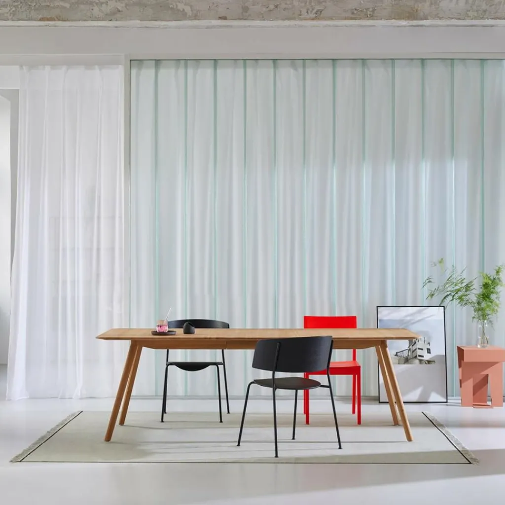 Seine Form ist schlicht und elegant zugleich. Charakteristisch für den Meyer Esstisch ausziehbar 180-225cm ist seine schlanke Silhouette. Die Tischplatte ist auffällig dünn und springt an der Unterseite zurück, was den formschönen Tisch noch zarter wirken lässt. Dank der weit ausgestellten Beine bietet er viel Platz beim Sitzen und garantiert zudem einen stabilen Stand. Seine matte, gewachste Oberfläche bringt die edle Holzoberfläche schön zur Geltung. Sie lässt sich zudem einfach nachwachsen, falls sie einmal zerkratzen sollte. Damit eignet sich der Esstisch nicht nur für ein Familientreffen daheim. Er lässt sich ebenso gut für ein Meeting im Büro verwenden.