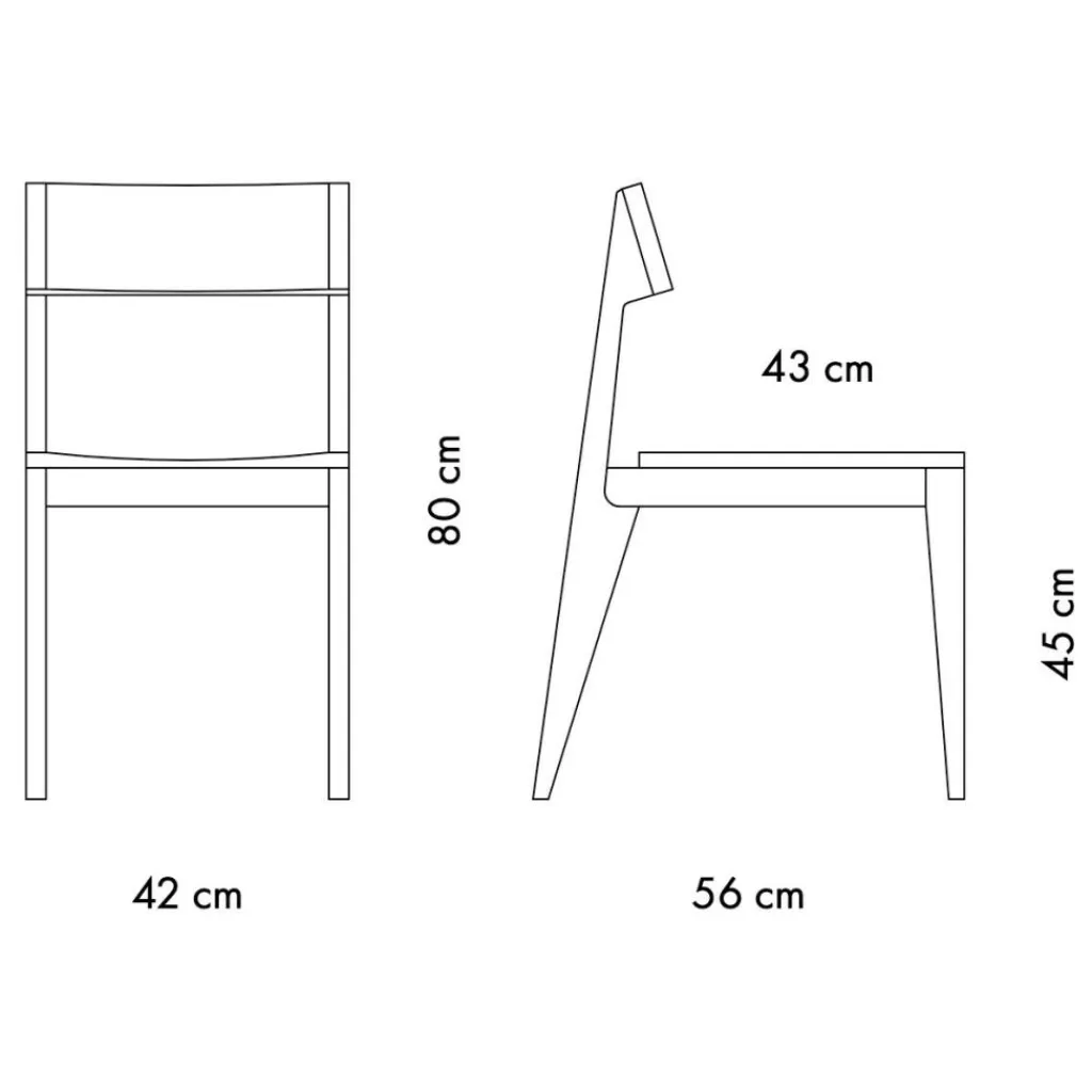 Der in verschiedenen Farben gewachste oder lackierte Stuhl wird mit Kunststoffgleitern geliefert, die heikle Böden schützen. Der 7 kg breite Stuhl ist 56 cm tief und 42 breit. Die Sitzhöhe beträgt 45 cm. Der Schulz Stuhl ist 80 cm hoch.