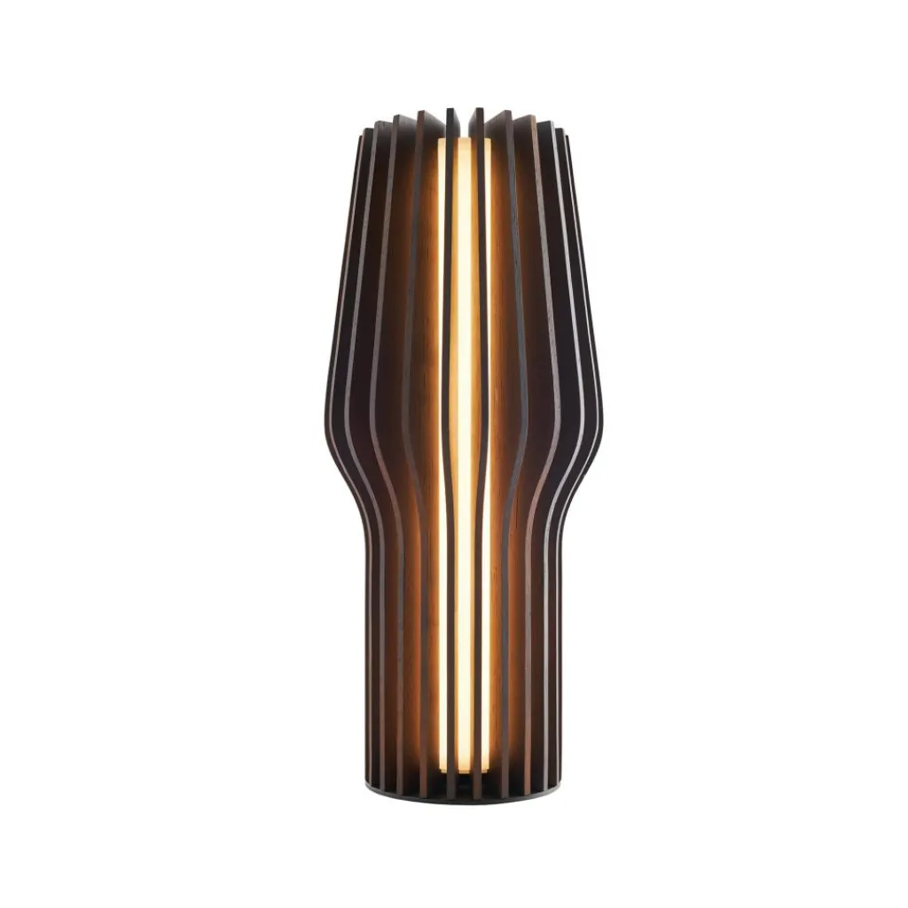 Funktional und edel: Die Radiant LED Akkuleuchte besticht mit ihrem puristischen Konzept. Ihre äußere Form spielt auf eine klassische Tischleuchte mit Schirm und Fuß an. Die zahlreichen Lamellen aus Eichenholz machen die Designleuchte nicht nur zu einem dekorativen Blickfang, sie erzeugen auch ein blendfreies, angenehm warmes Licht und werfen einen homogenen Schatten. Zudem punktet die Radiant LED Akkuleuchte durch ihre vielfältige Anwendbarkeit. Sie ist per Touchdimmer oben in drei Helligkeitsstufen einstellbar und dank ihrer handlichen Form einfach zu tragen. Der integrierte Akku ermöglicht einen flexiblen Einsatz überall dort, wo ein stimmungsvolles Licht gefragt ist: im Wohnzimmer, im Wintergarten, im Gartenhäuschen oder auf der Terrasse.