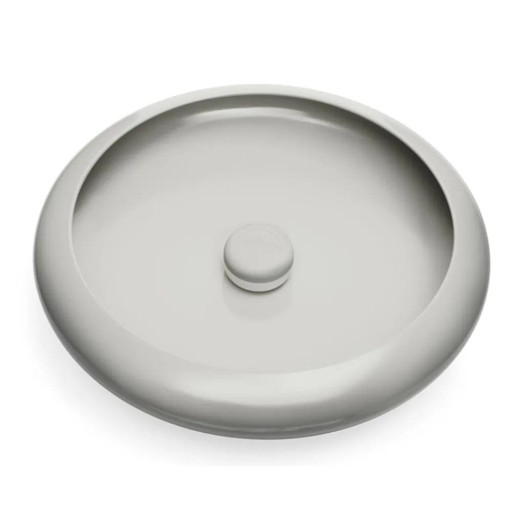 Als runder Blickfang ist die Oloha Large Schale mit LED Akkuleuchte moderne Lichtquelle, Designobjekt und Kunstwerk zugleich. Sie besteht aus einer hochglänzenden pulverbeschichteten Stahlschale. Mittig ist eine magnetische LED-Leuchteinheit mit einem Knopf aus ABS-Kunststoff angebracht. Darüber lässt sich das integrierte Leuchtmittel stufenlos dimmen. Es leuchtet bei hellster Stufe 10 Stunden, bei niedrigster Stufe 99 Stunden in warmweißem Licht, wobei der Schein maßgeblich von der Farbe der Schale beeinflusst wird. Die LED-Einheit kann abgenommen und mit einem mitgelieferten USB-A inklusive 60cm langem Pogo-Pin-Kabel in 1,5 Stunden aufgeladen werden. Auf der Rückseite des Modells befindet sich ein Silikonuntersetzer mit einer Öse, die zum Aufhängen an der Wand dient. Gleichzeitig macht sich die Schale hervorragend als Stimmungsaufheller auf einem Tisch.