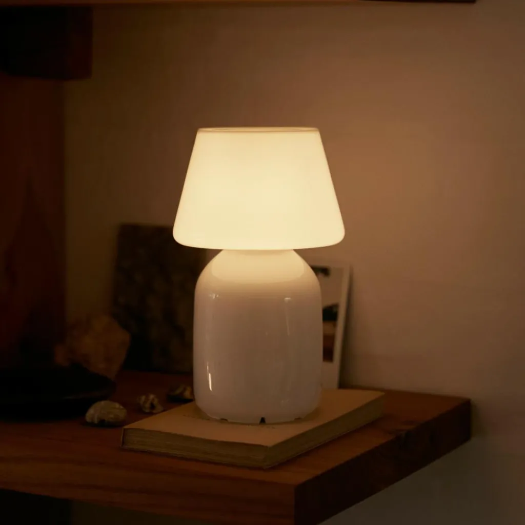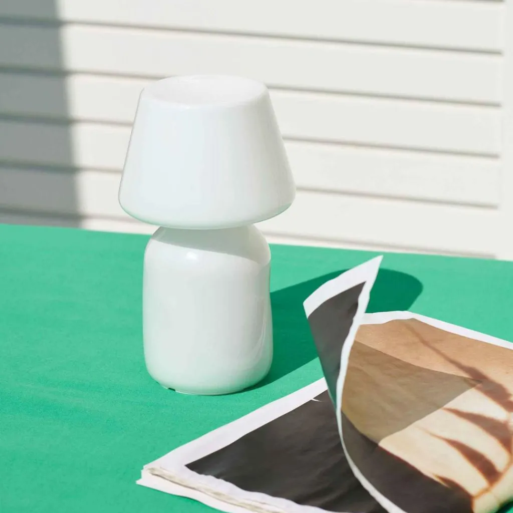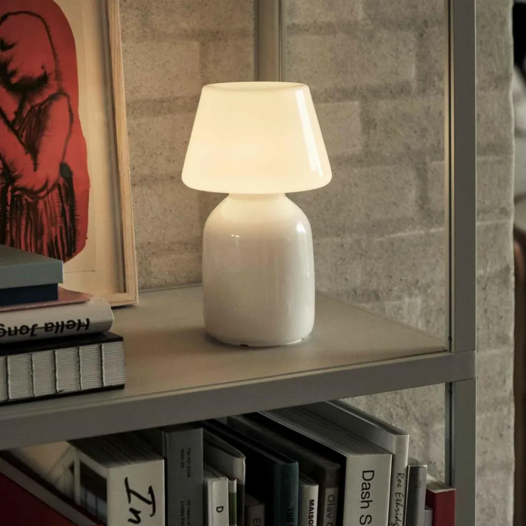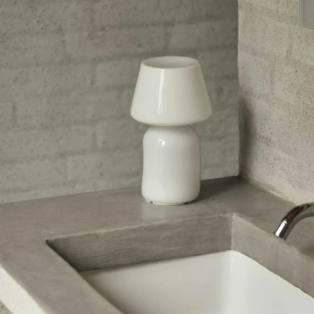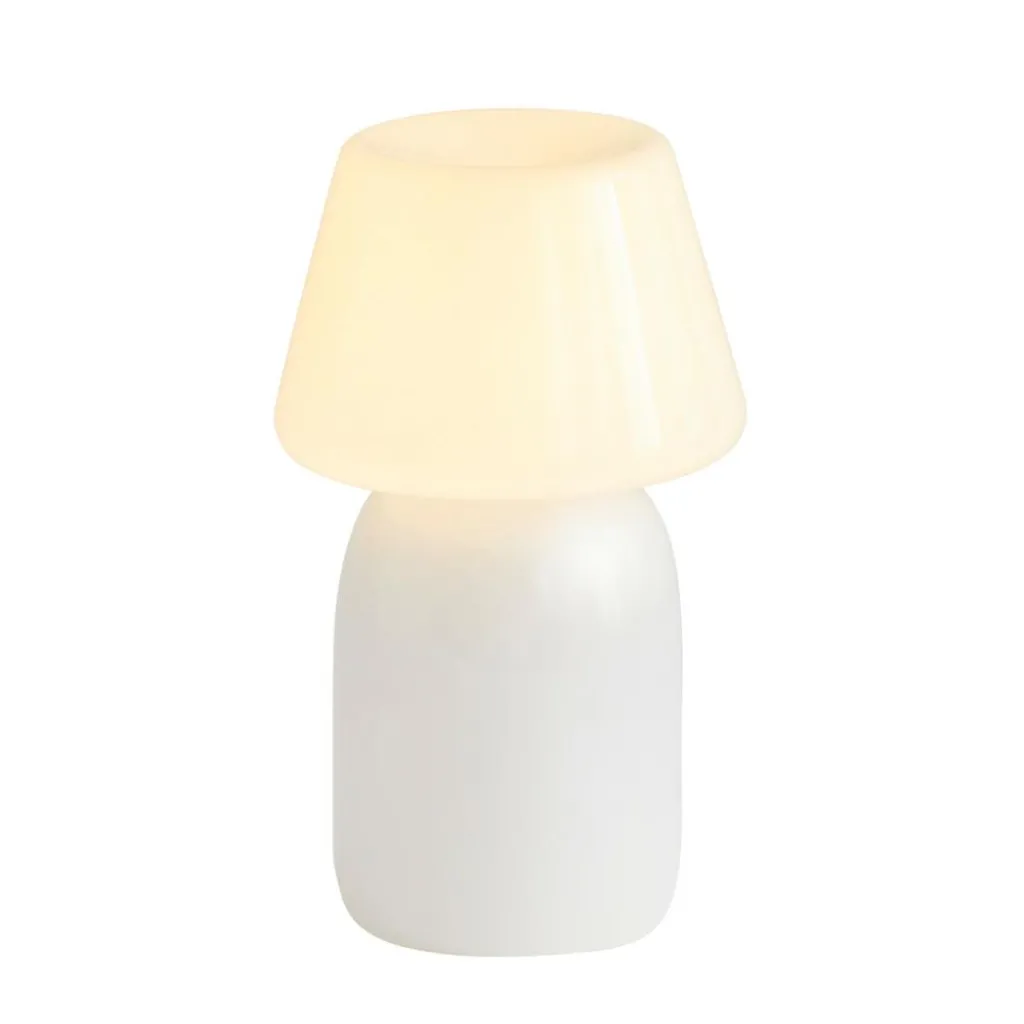 Von der klassischen Lampenform inspiriert, besticht die Apollo Akkuleuchte durch ihr einfaches Design. Dabei zeigen verschiedene Modelle nebeneinander betrachtet deren individuellen Charakter. Denn ihre vasenförmige Basis ist unterschiedlich, und oft wirkt der Schirm leicht verrutscht. Doch ist jedes einzelne Exemplar handlich und flexibel einsetzbar. Anders als bei herkömmlichen Leuchten üblich ist die Apollo Akkuleuchte aus einem einzigen Stück Opalglas gefertigt. Lichtquelle und Akku sitzen unter dem Schirmteil. So erzeugt die Apollo Akkuleuchte ein angenehm weiches und diffuses Licht. An der Unterseite ihrer Basis befindet sich ein dreistufiger Dimmer. Die Apollo Akkuleuchte ist innen und außen verwendbar. Damit eignet sie sich gut für den Balkon oder ein Plätzchen mitten im Garten. Auch als Tischbeleuchtung in einem Terrassencafé ist die Apollo Akkuleuchte perfekt.