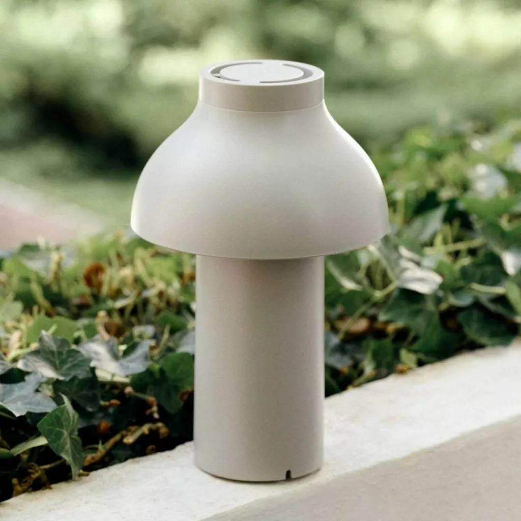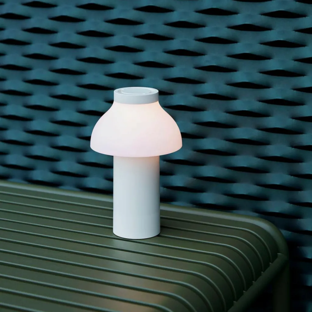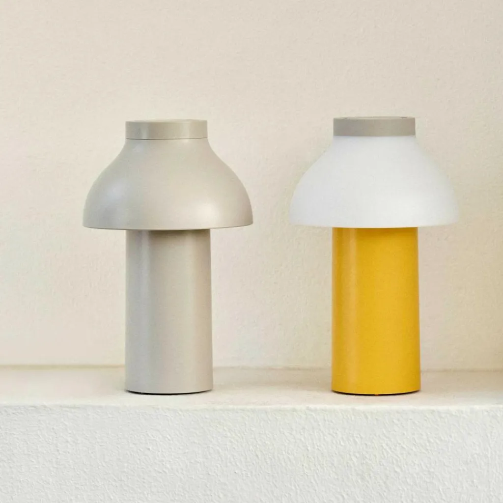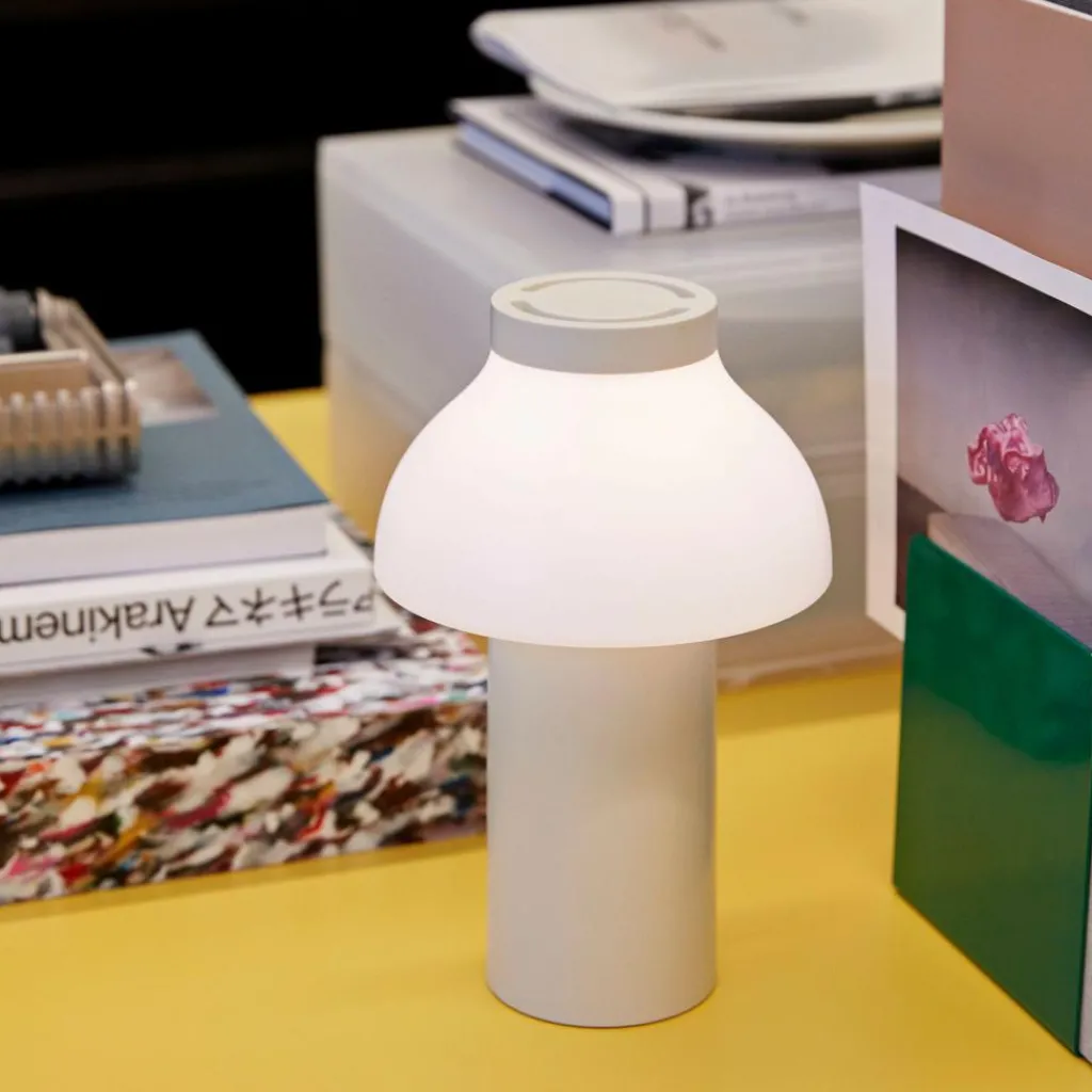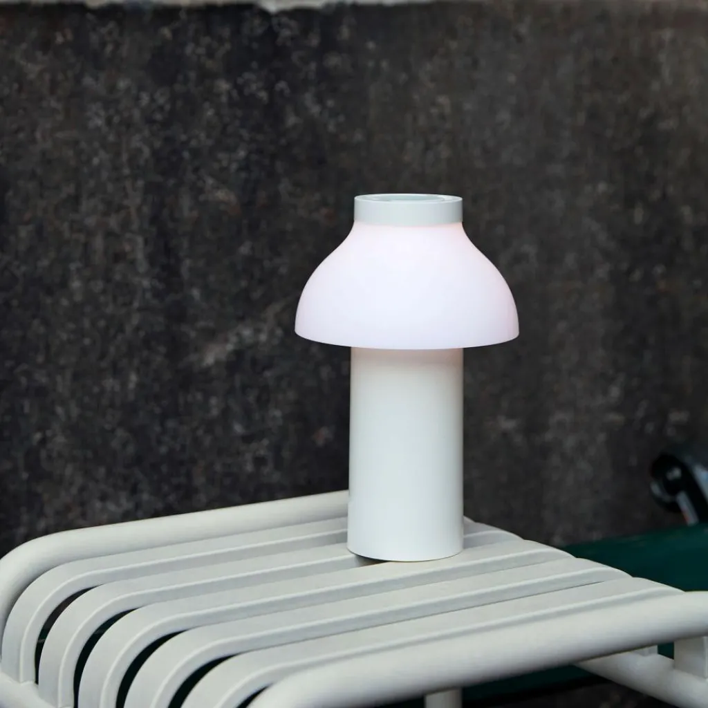 Die freistehende PC Portable Akkuleuchte wurde von Designer Pierre Charpin für den Hersteller HAY entworfen. Sie verkörpert mit ihren runden Formen das Streben nach Harmonie und Glück. Der Diffusor ist, wie bei allen Leuchten dieser Reihe, abnehmbar. Aufgesetzt richtet er das Licht nach unten und verbirgt die Lichtquelle. Gleichzeitig ist er formangebend und Mittelpunkt der warmen und einladenden Wirkung der Leuchte.