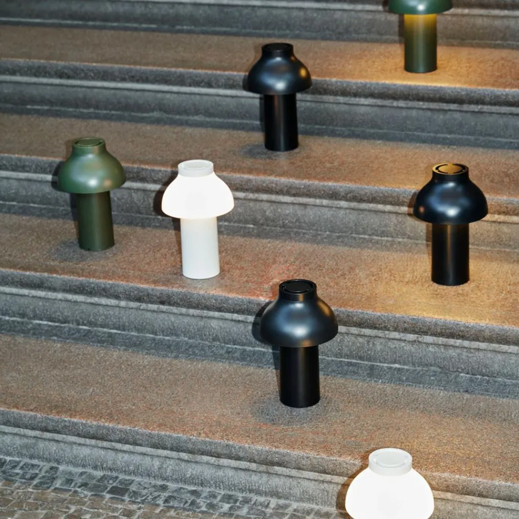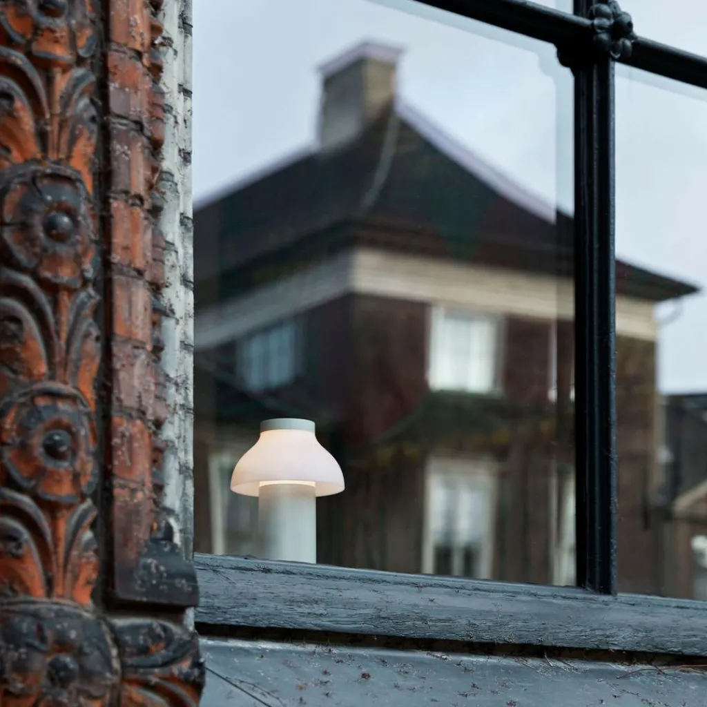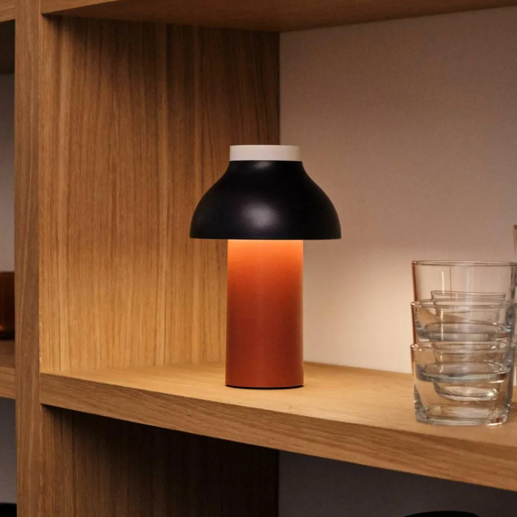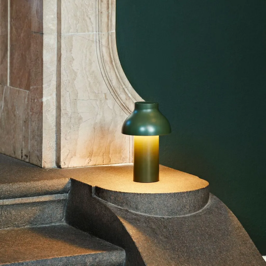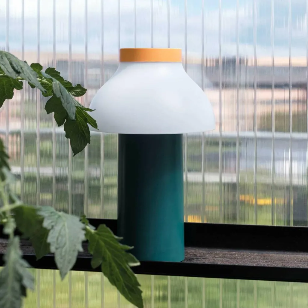 Die freistehende PC Portable Akkuleuchte wurde von Designer Pierre Charpin für den Hersteller HAY entworfen. Sie verkörpert mit ihren runden Formen das Streben nach Harmonie und Glück. Der Diffusor ist, wie bei allen Leuchten dieser Reihe, abnehmbar. Aufgesetzt richtet er das Licht nach unten und verbirgt die Lichtquelle. Gleichzeitig ist er formangebend und Mittelpunkt der warmen und einladenden Wirkung der Leuchte.