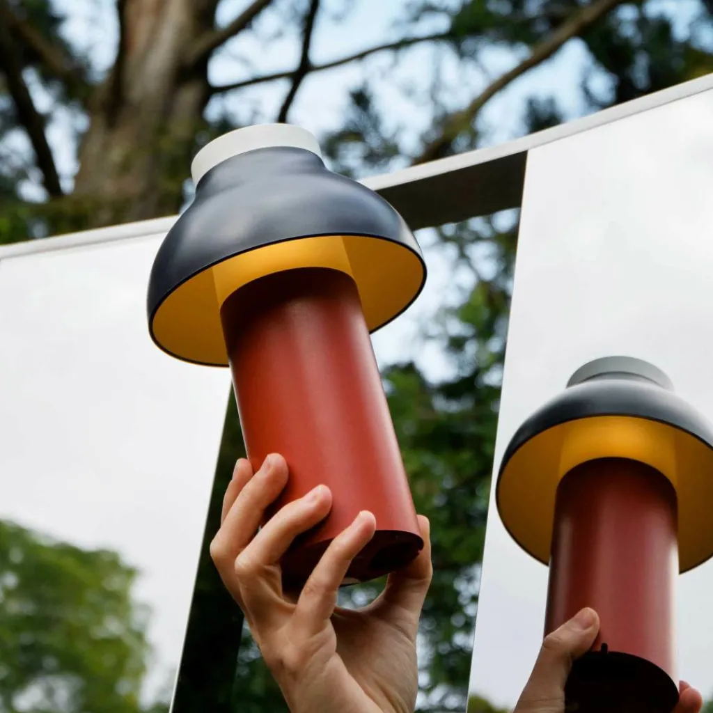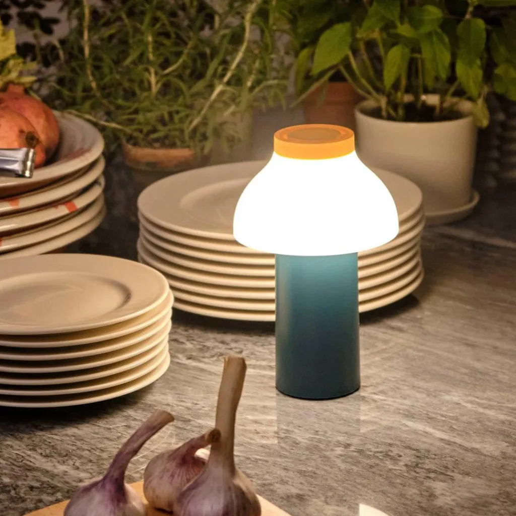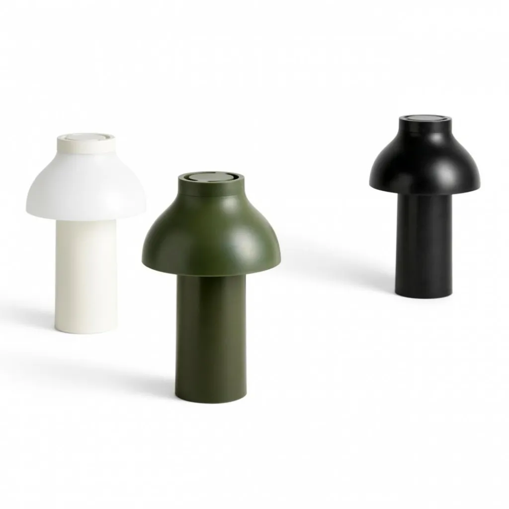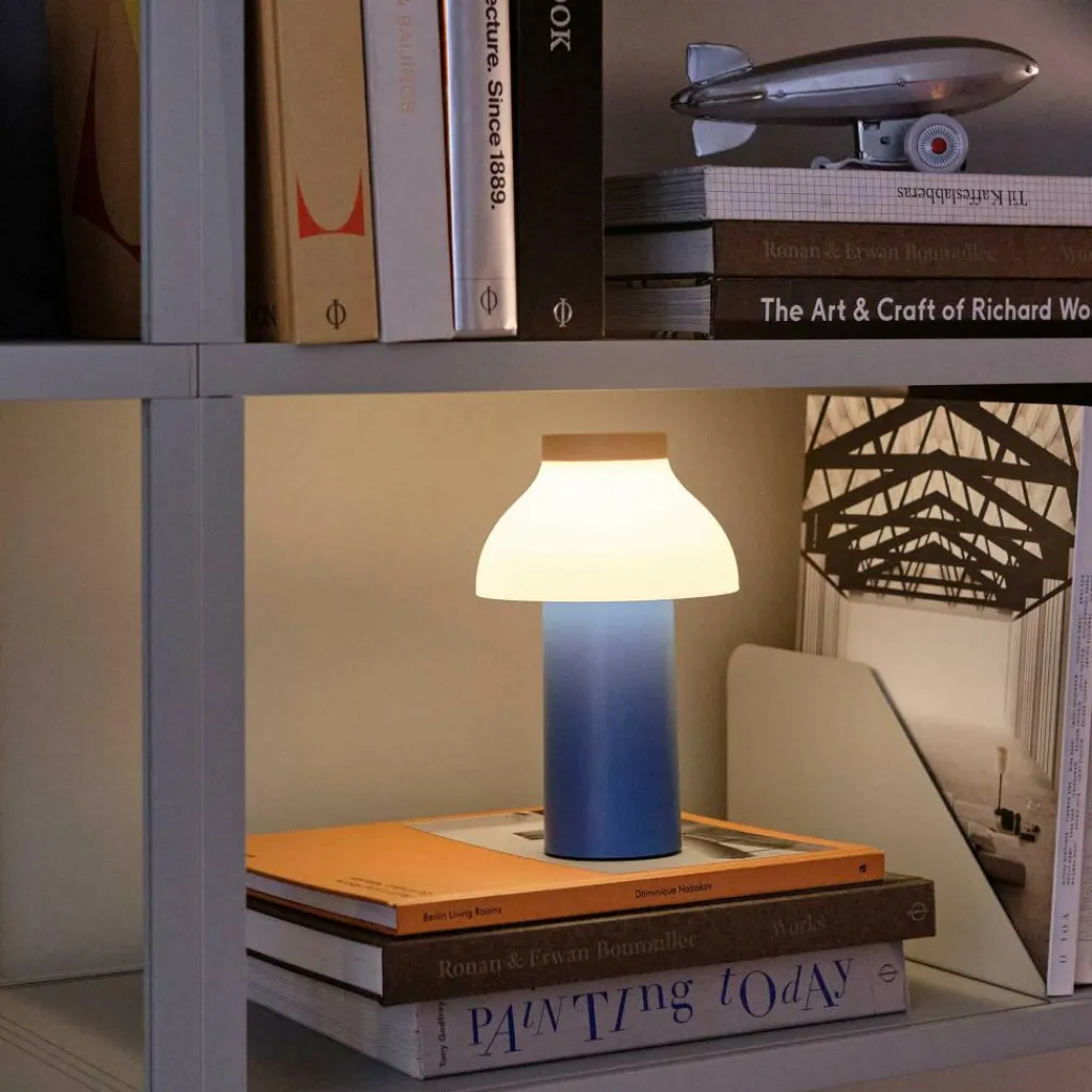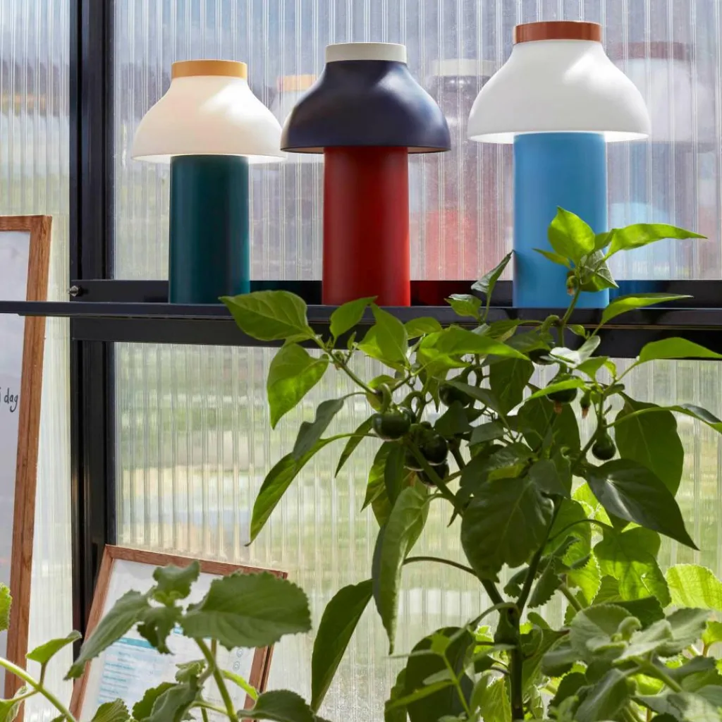 Die freistehende PC Portable Akkuleuchte wurde von Designer Pierre Charpin für den Hersteller HAY entworfen. Sie verkörpert mit ihren runden Formen das Streben nach Harmonie und Glück. Der Diffusor ist, wie bei allen Leuchten dieser Reihe, abnehmbar. Aufgesetzt richtet er das Licht nach unten und verbirgt die Lichtquelle. Gleichzeitig ist er formangebend und Mittelpunkt der warmen und einladenden Wirkung der Leuchte.