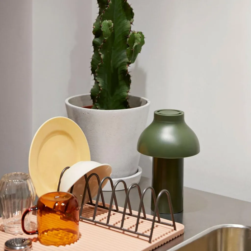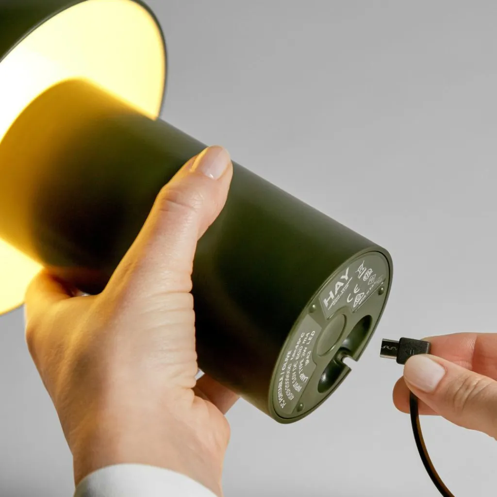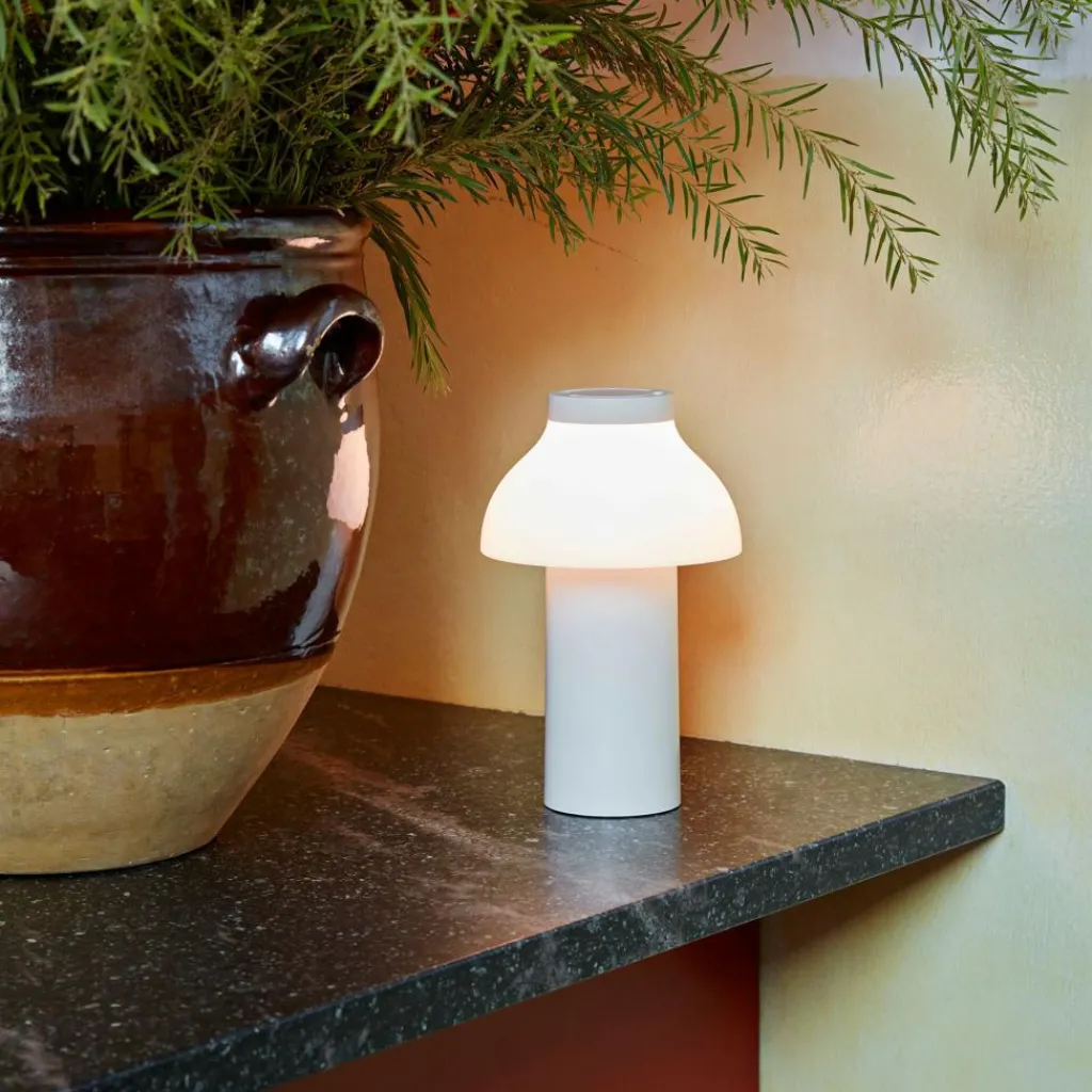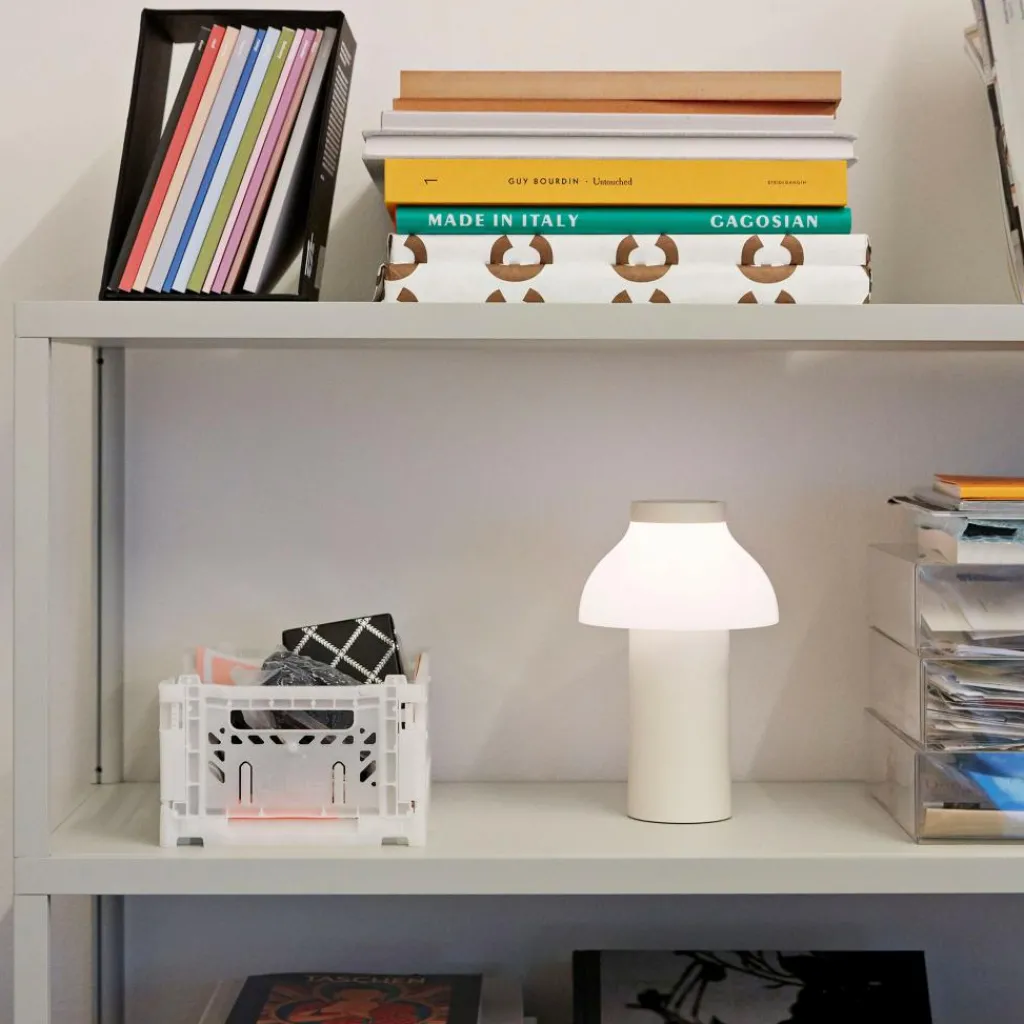 Mit einem Durchmesser von 14 cm und einer Höhe von 22 cm fühlt sich die PC Portable Akkuleuchte in jedem Raum zu Hause. So liebt sie es, im Büro auf dem Tisch zu stehen oder im Wohnzimmer auf einem Sideboard. Gern wechselt die Leuchte aus dem Hause HAY auch ihren Standort und fügt sich dank ihres skandinavisch-schlichten Designs harmonisch in jedes Umfeld ein. Sie kann sogar ohne Bruch mit modernen wie klassischen Einrichtungsstilen kombiniert werden.
