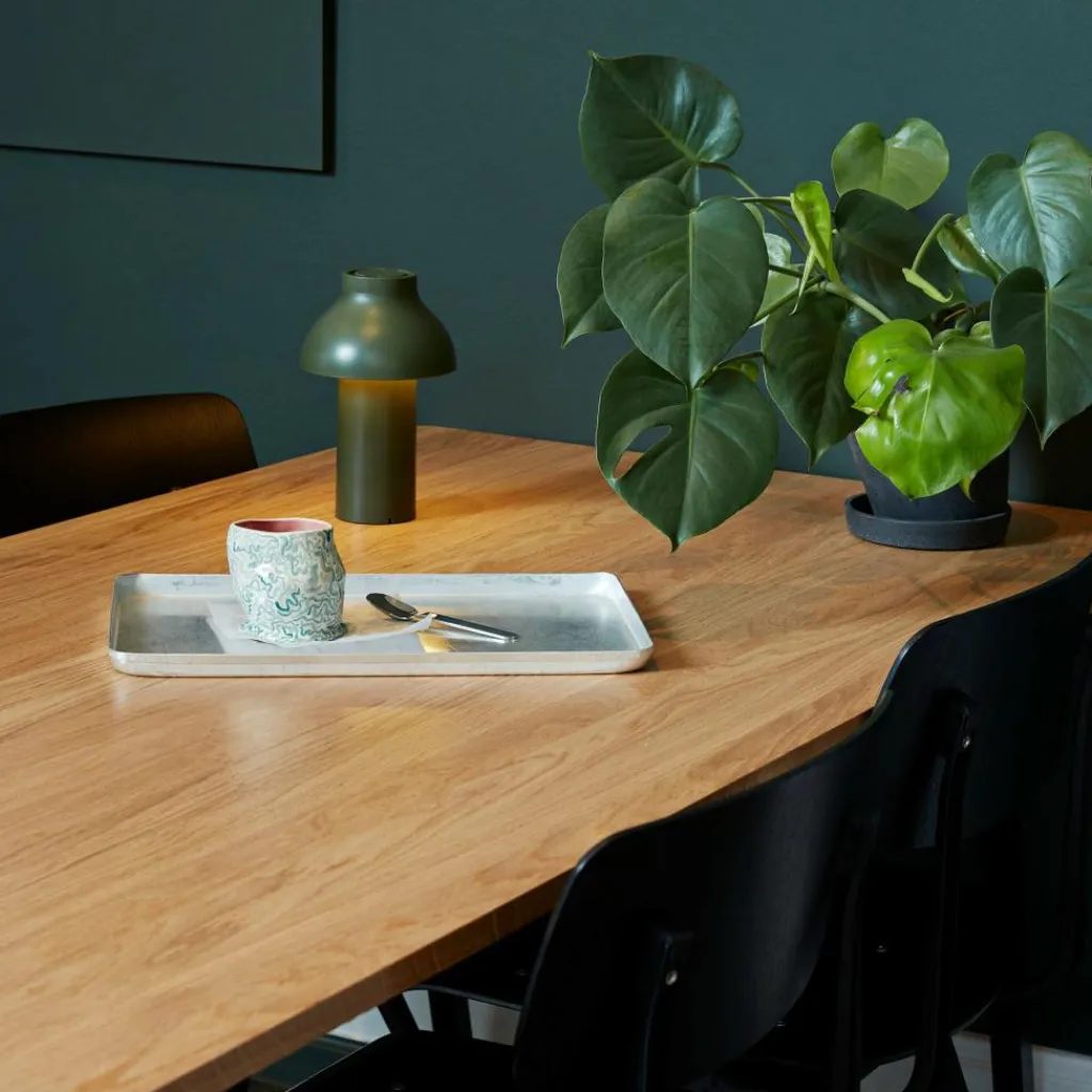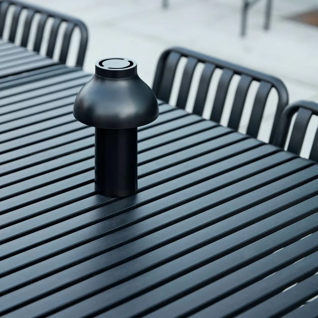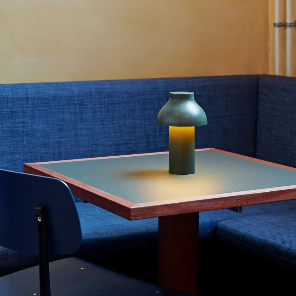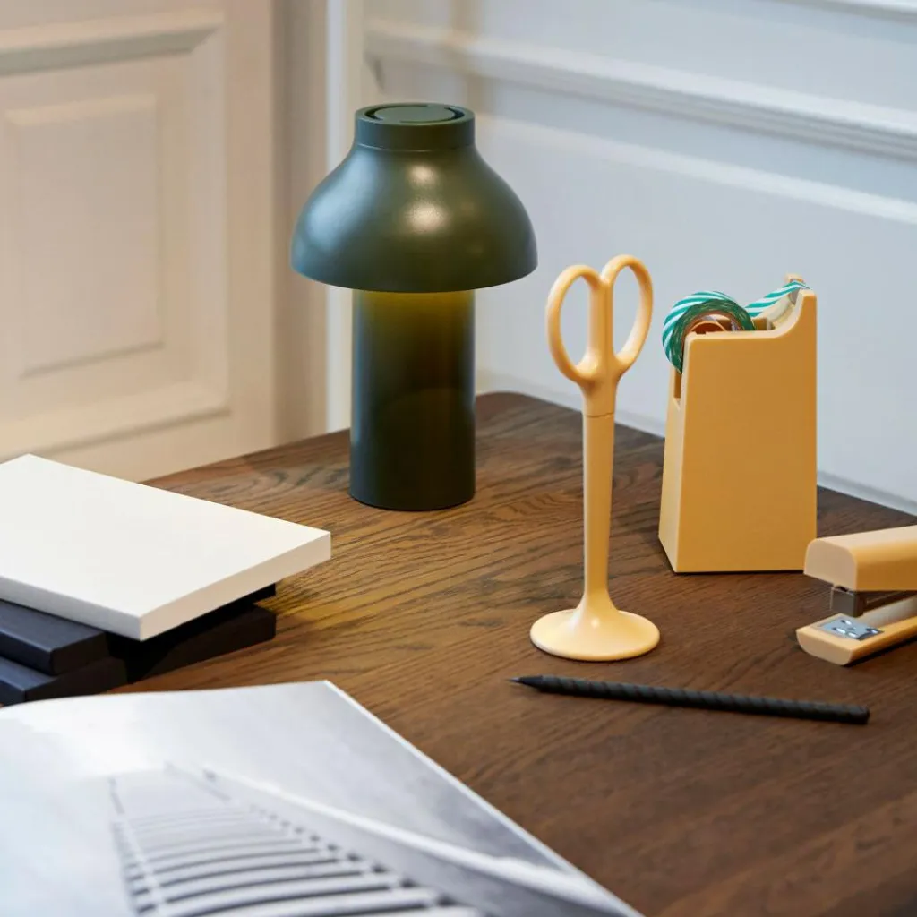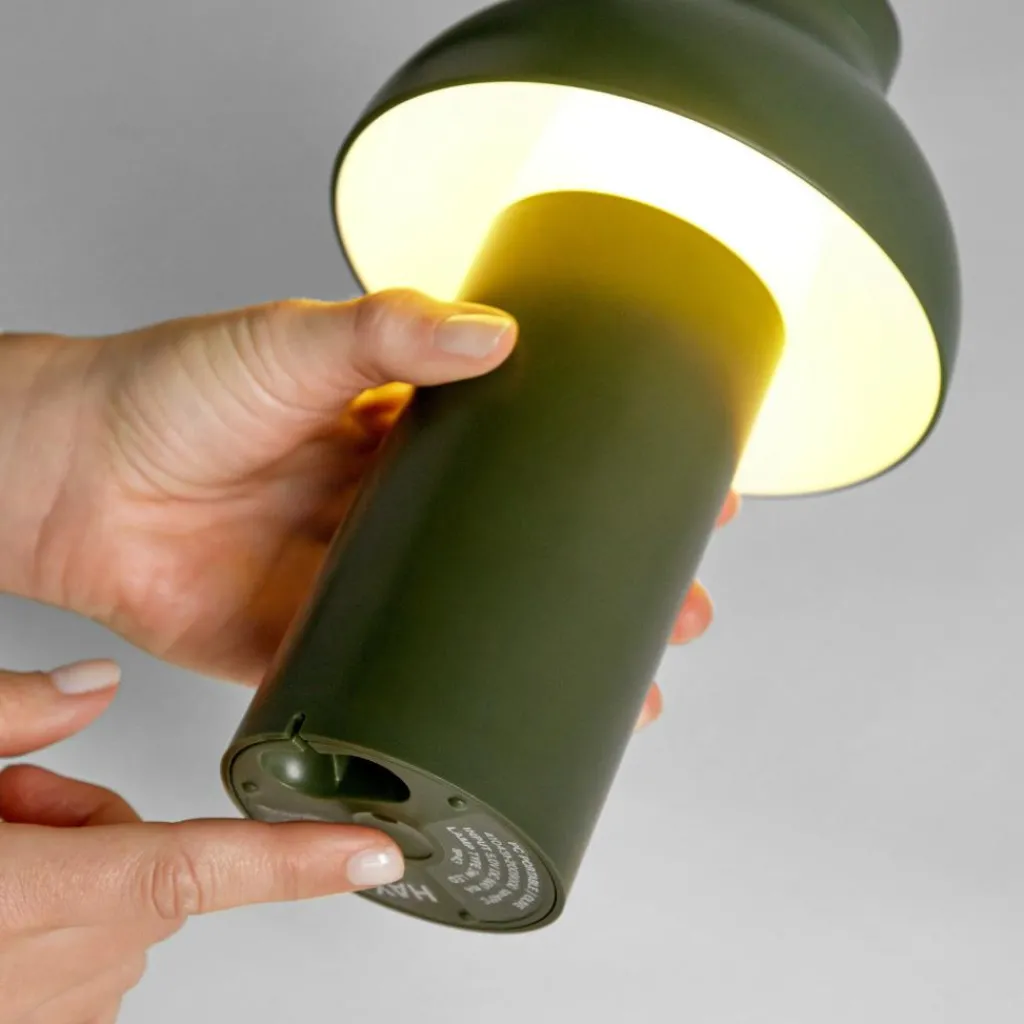 Mit einem Durchmesser von 14 cm und einer Höhe von 22 cm fühlt sich die PC Portable Akkuleuchte in jedem Raum zu Hause. So liebt sie es, im Büro auf dem Tisch zu stehen oder im Wohnzimmer auf einem Sideboard. Gern wechselt die Leuchte aus dem Hause HAY auch ihren Standort und fügt sich dank ihres skandinavisch-schlichten Designs harmonisch in jedes Umfeld ein. Sie kann sogar ohne Bruch mit modernen wie klassischen Einrichtungsstilen kombiniert werden.