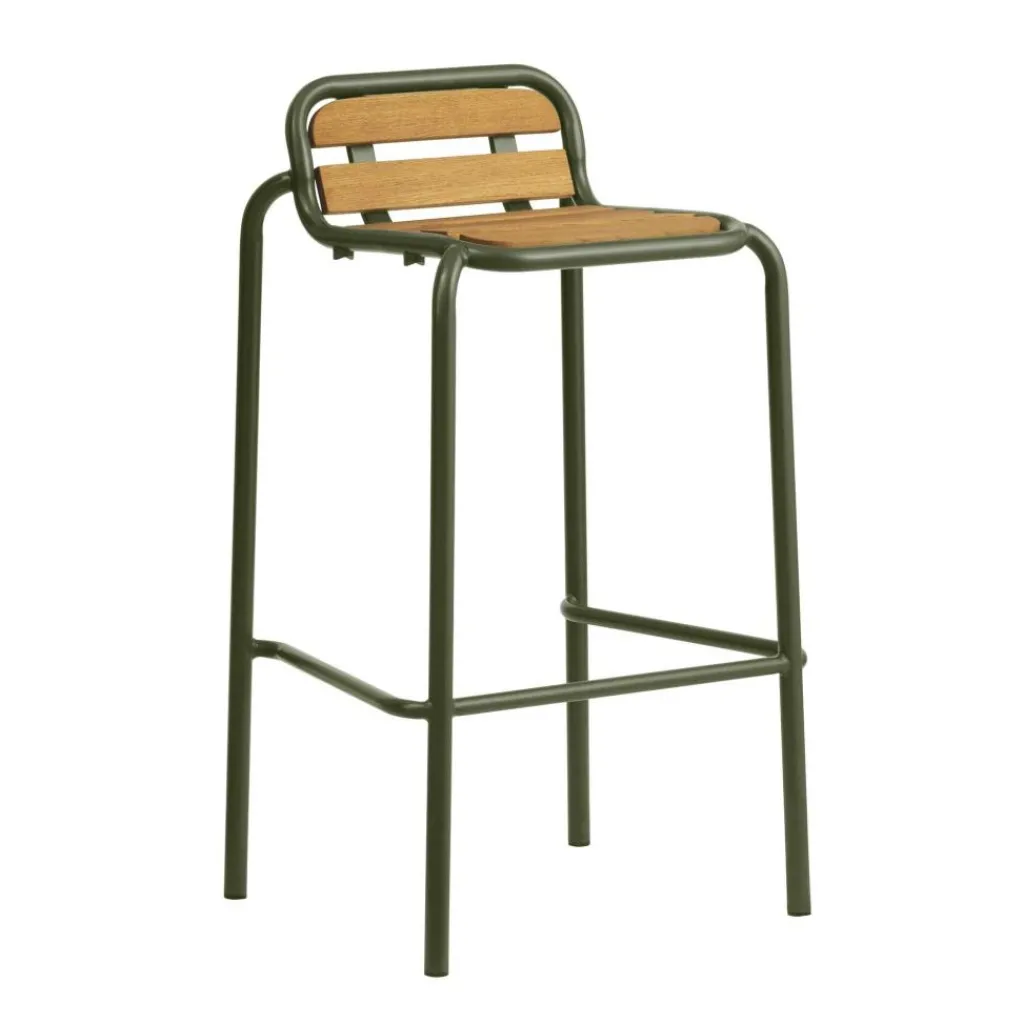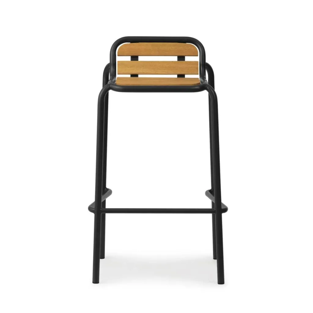 Der Vig Gartenbarstuhl Holz 75cm von Normann Copenhagen, gestaltet von Designer Simon Legald, bringt funktionales Outdoor-Design auf Augenhöhe.