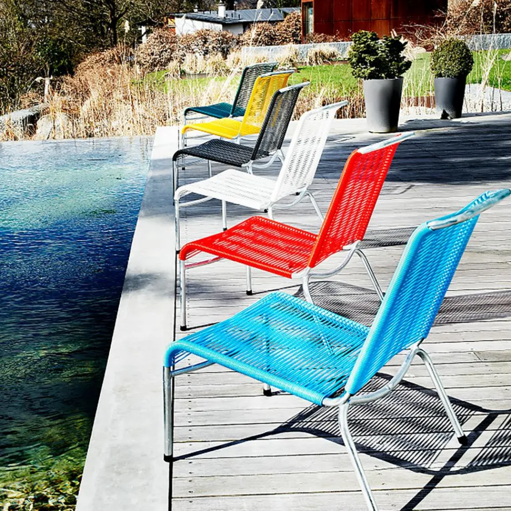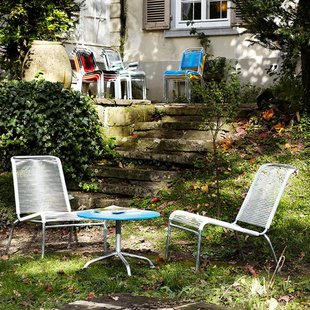 Der Werksentwurf für den Altorfer Modell 1139 Lounge Gartenstuhl ist mit 2012 datiert. Er basiert auf demselben Herstellungsprinzip wie die legendäre Altorfer-Liege, die es seit 1946 gibt. Gleich auf den ersten Blick wird klar, warum der Stuhl den Beinamen Spaghettistuhl trägt. Die Sitzfläche und die Rückenlehne des Altorfer Modell 1139 Lounge Gartenstuhl bestehen wie bei allen Modellen der Serie aus PVC-Garn. Die Elemente werden in Handarbeit gefertigt: Dabei wird das Garn um den Stahlrohrrahmen gewickelt. Markantes Detail des Altorfer Modell 1139 Lounge Gartenstuhl ist die leicht gekippte Sitzfläche. Sie regt dazu an, sich bequem zurückzulehnen und den Tag zu genießen. Egal ob auf der Terrasse, im Outdoorbereich eines Cafés oder im Garten, das wetterfeste Möbelstück macht einfach Lust darauf, sich im Freien aufzuhalten.
