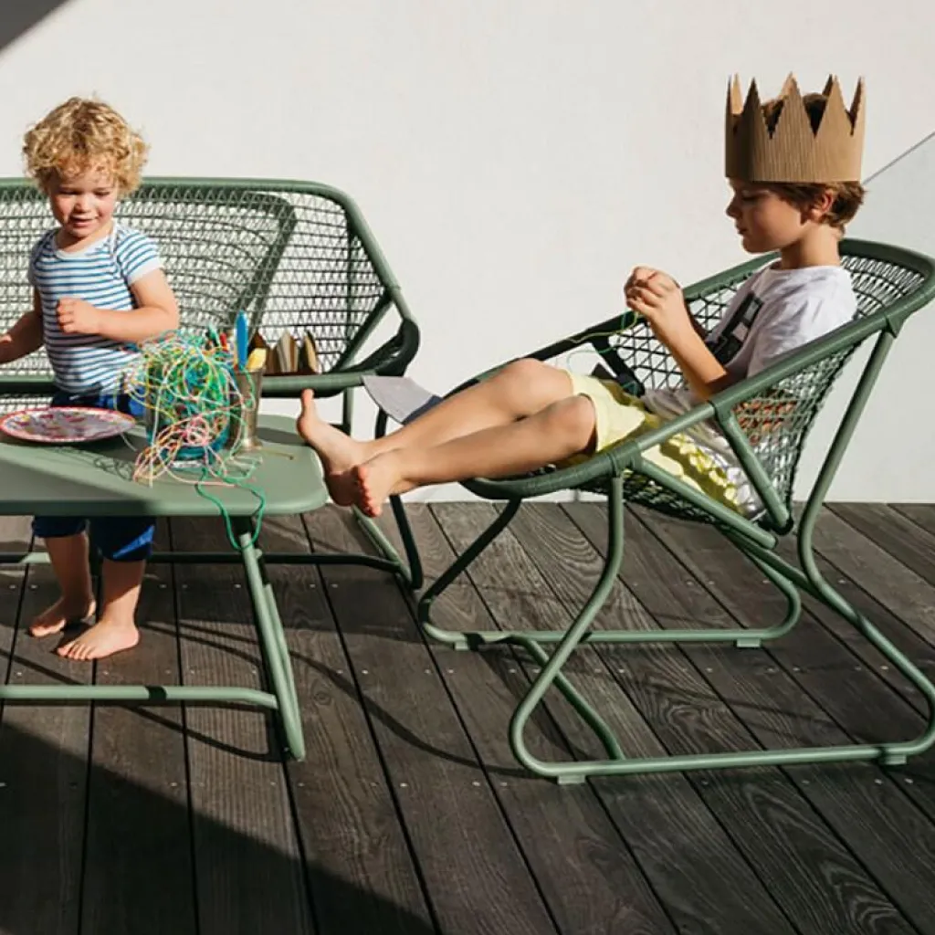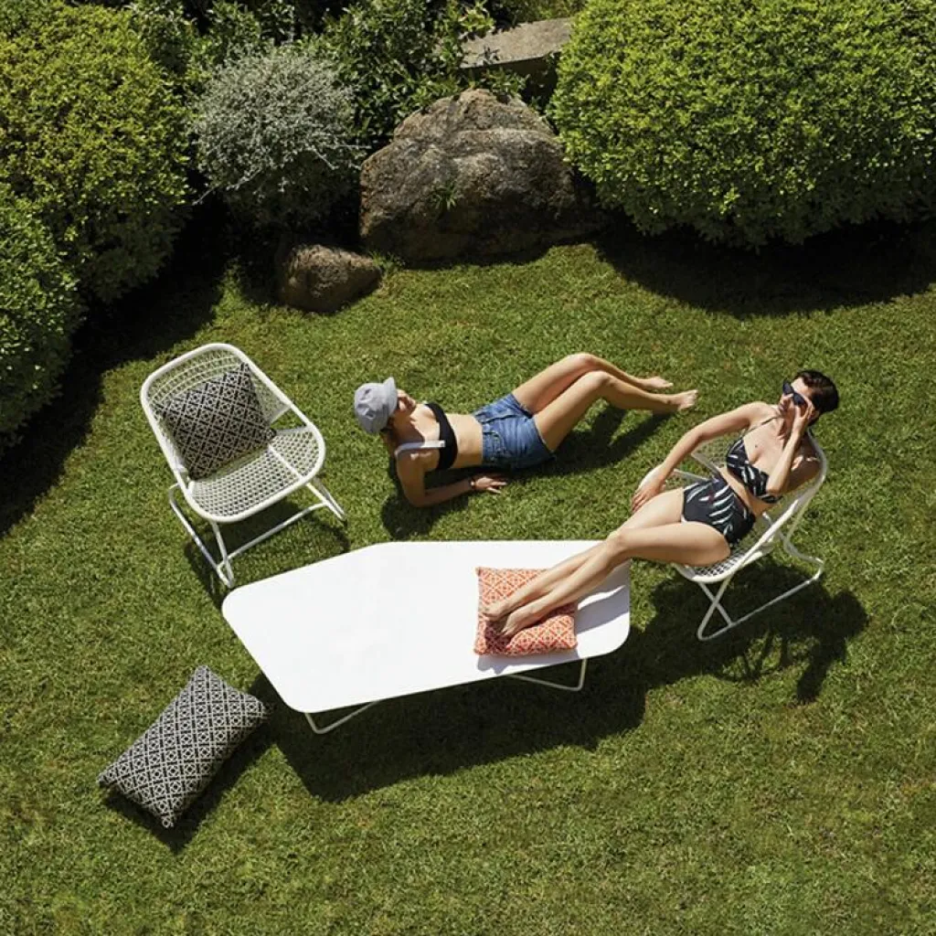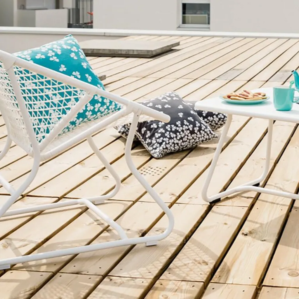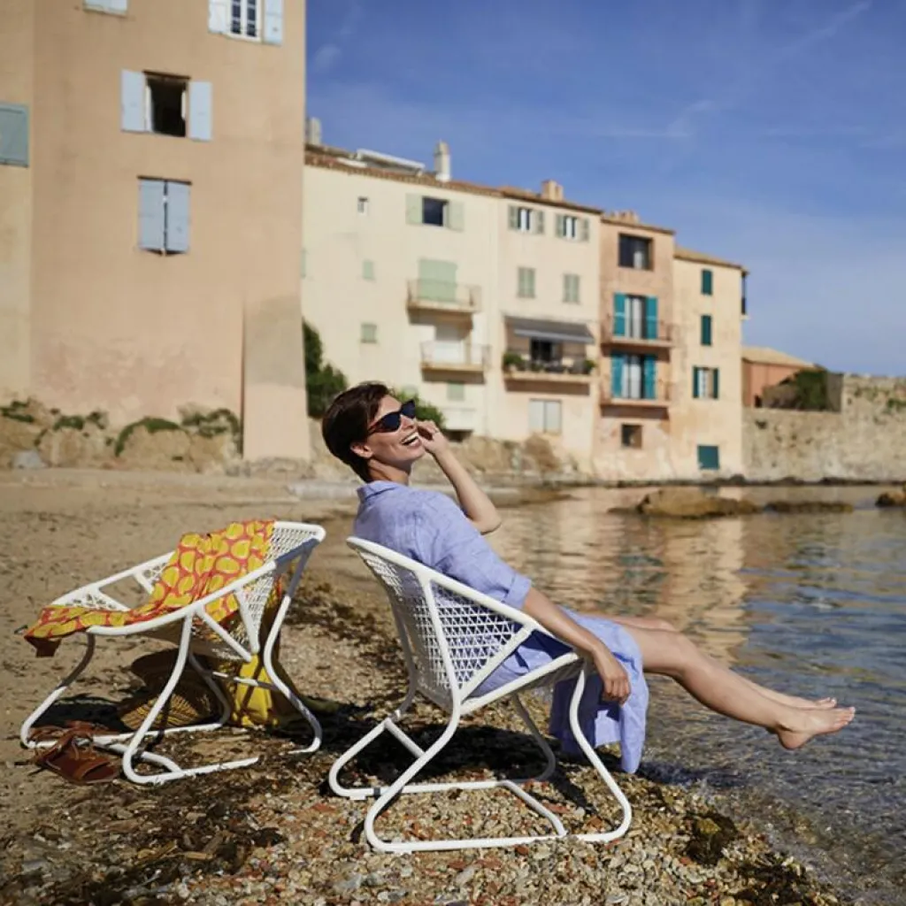 Fermob hat mit dem Designer auch das neue Material für seine Gartenmöbel eingeführt: geflochtenes Polymer, das durch seine Stabilität überzeugt und gleichzeitig eine weiche, bequeme und seidige Flechtung ermöglicht. Vor allem überzeugt der Sixties Gartensessel durch sein luftig-leichtes und stilsicheres Geflecht mit Criss Cross Motiv.