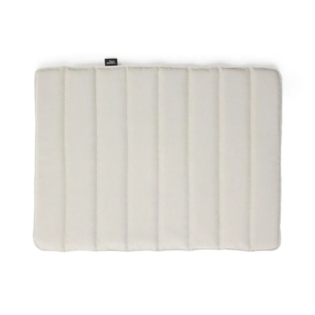 Die Groove Kollektion ist die erste Outdoor-Serie des britischen Design-Herstellers Tom Dixon und verbindet einen eleganten Art-Déco-Stil mit einer harmonisch geschwungenen Formsprache. Das Sortiment umfasst Gartentische, Stühle und einen passenden Hocker, die mit viel Liebe zum Detail gestaltet wurden. Nach jahrelanger Entwicklungsarbeit entstand eine Möbelreihe, die Ästhetik und Funktionalität perfekt kombiniert. Das Groove Outdoor Sitzkissen 50×37,8cm ist passgenau auf die Sitzfläche des Groove Gartenstuhls und des Groove Gartenarmlehnstuhls abgestimmt. Seine sanft gerillte Struktur ergänzt die markante Linienführung der Stühle und fügt sich nahtlos in das Gesamtbild ein. Gleichzeitig bleibt die charakteristische Rückenlehne frei und unverändert sichtbar. Das Kissen besteht aus einer Polyurethan-Schaumstofffüllung und einem Bezug aus 100 % Polypropylen, einem Olefin-Gewebe, das wetterfest, UV-beständig und farbecht ist. Dennoch empfiehlt es sich, das Sitzkissen bei Nichtgebrauch an einem trockenen Ort aufzubewahren, um die Lebensdauer zu verlängern. Dank der rutschfesten Unterseite bleibt das Kissen sicher an seinem Platz. Bitte beachten Sie, dass der Bezug nicht abnehmbar ist.