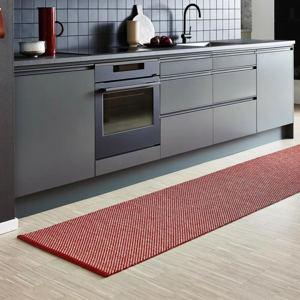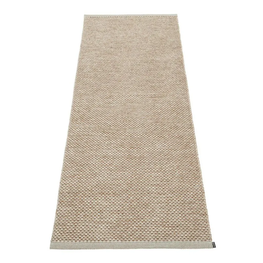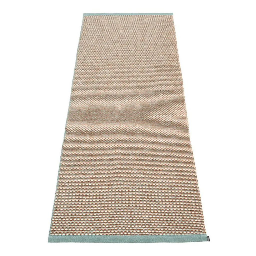 Der pflegeleichte und vielseitig einsetzbare Läufer ist aus phtalatfreiem PVC und Polyester hergestellt und hat eine Länge von 200 cm, eine Breite von 70 cm und ist 1 cm hoch. Der Effi Teppichläufer 70x200cm ist in verschiedenen Farben bestellbar. Der im schwedischen Dalarna produzierte Teppich hat eine dekorative Kante an den beiden Breitseiten. Der sowohl im Innen- als auch im Außenbereich einsetzbare Teppich zeichnet sich dadurch aus, dass er aus der Ferne betrachtet so aussieht, als wäre er aus nur einer Farbe gewebt. Bei genauerer Betrachtung erkennt man, dass er aus drei unterschiedlichen Farbtönen besteht, die zu einer einzigen Farbe verschmelzen. Der Effi Teppichläufer 70x200cm der Marke pappelina ist bedenkenlos auch barfuß zu betreten, da er absolut frei von schädlichen Stoffen oder Metallen ist. Er ist somit vielseitig einsetzbar, sei es auf dem Balkon, der Terrasse, im Kinder- oder Badezimmer sowie in der Küche.