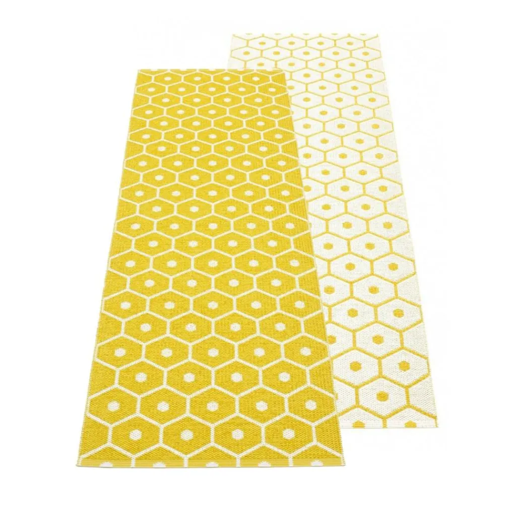 Als extrem belastbarer Kunststoffteppich ist Honey von Pappelina sowohl für indoor als auch outdoor geeignet. Nutzen Sie den Honey Teppich 70x225cm beispielsweise als langen Läufer für Ihre Diele und Foyer, als Küchen-Teppich oder draußen als strapazierfähiger Bodenbelag für Balkon und Terrasse.