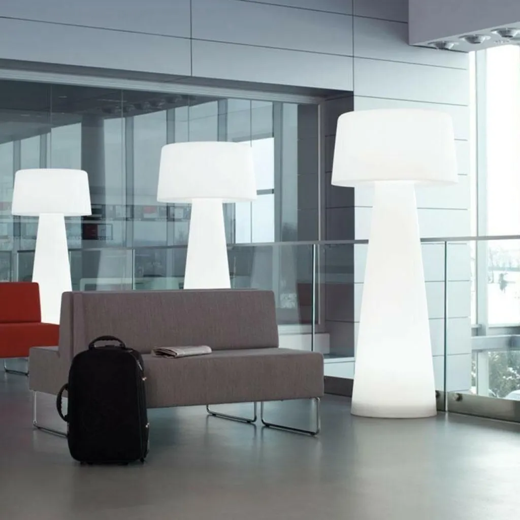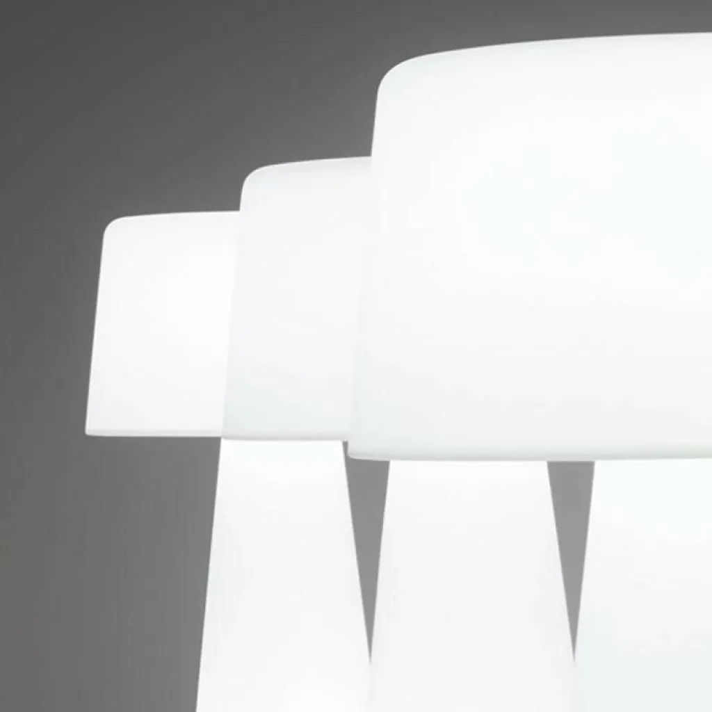 Beinahe wie ein Pilz mutet dieses raffinierte Kunstwerk aus Polyethylen an. Gleichzeitig strahlt es etwas Futuristisches, Geheimnisvolles aus. Verstärkt wird dieser Eindruck durch die schiere Größe von 190 cm und den Durchmesser von imposanten 80 cm. Mit dieser Größe und seinen Materialeigenschaften eignet sich dieses Design von Alberto Basaglia und Natalia Rota Nodari vor allem für größere Räume, in denen sich tagsüber viele Menschen aufhalten. Sehr gut kommt es beispielsweise in Gewerberäumen zum Einsatz. Außerdem kann es problemlos im Außenbereich eingesetzt werden. So eignet sich die Time Out Stehleuchte vor allem zur stilvollen Gestaltung von Eingangsbereichen.
